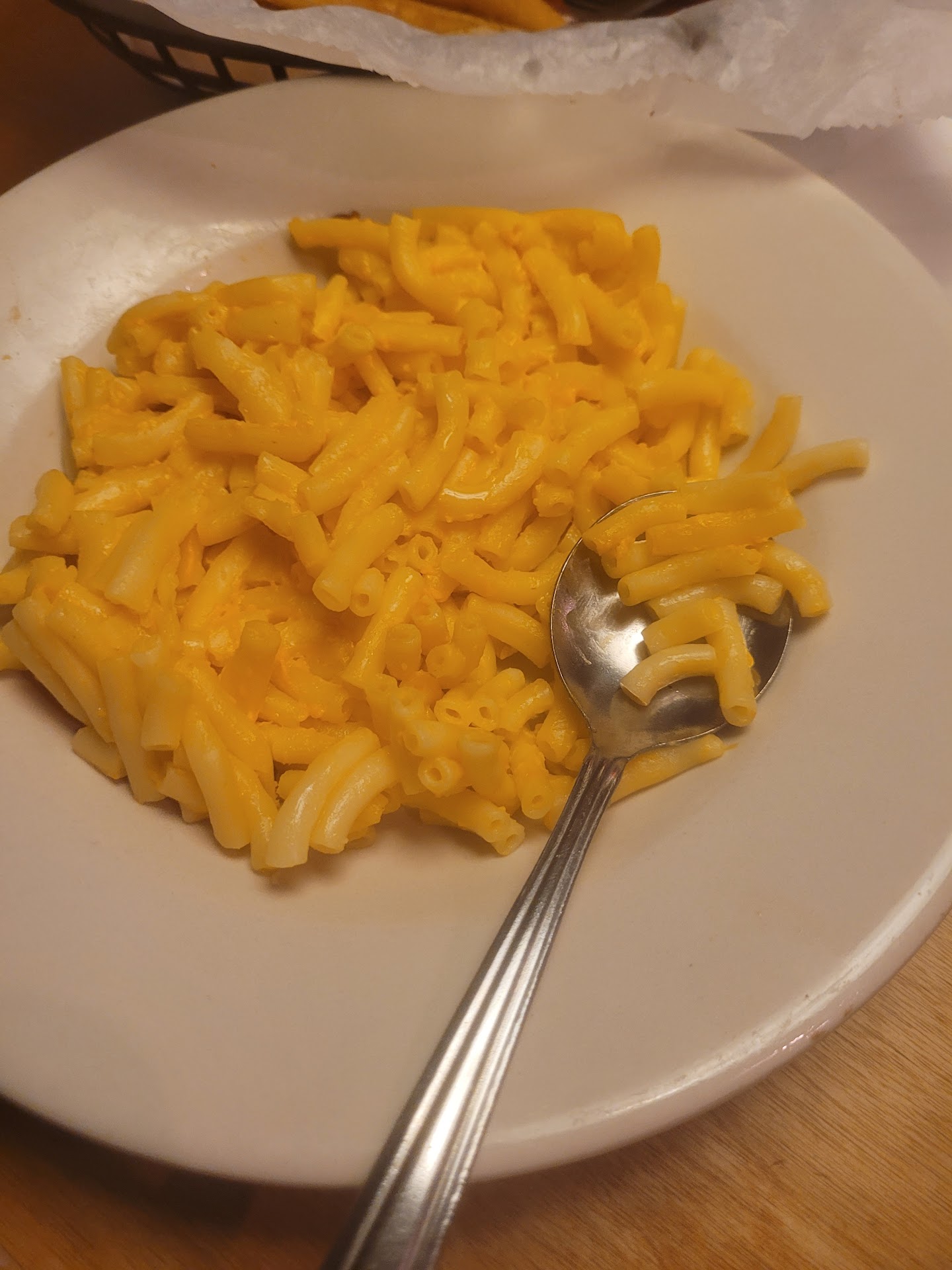 The potato was small. And, the fries looked like they had been heated in a kind of pan all sort of melded together with the cheese and bacon forming a thick block of goo I'd have to tear apart. The margarine served is margarine, not butter. Let's not call it that.