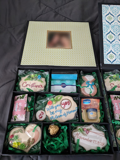 Read moreChristine did an amazing custom order of cookies for my bridesmaid proposal boxes. I sent her an example of what I wanted and a color scheme and she was quick to send me several color samples of the colors she could make. She was kind enough to include an extra cookie for me to try. I am very glad she did because it was delicious. All my bridal party loved them. The only downside was that the thought the cookies were too pretty to eat. (Although they all eventually did eat them :))...