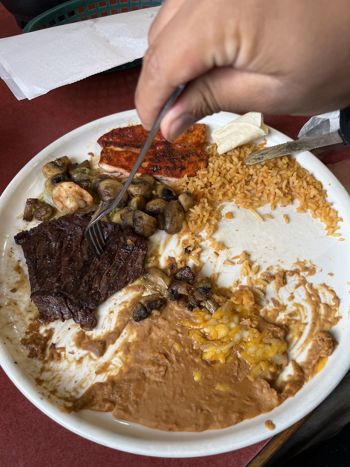 Read moreI honestly believe the positive reviews of this restaurant are written by the owner and probably close friends and family. I ordered the Cielo Mar Y Tierra- a go to dish for myself at any new Mexican restaurant I am trying. Firstly, the flour tortillas are not even made by hand. Sure they don't advertise it but the sheer simplicity should warrant at least an attempt. The flour tortillas somehow taste worse than store bought or even Taco Bell for that matter. The seasoning on the chicken was actually good but the chicken itself was way over cooked and really dry. I have zero clue why their are mushrooms on this plate at all or why the shrimp went over them. Traditionally not a thing and a weird combination. Shrimp seemed like they were boiled as they had a spongy consistency. Mushrooms are mushrooms, can't really mess that up but somehow they did. There are about 3 different cook batches from what it seems since they ranged from being raw to over cooked. Lastly, I've never had carne asada be so greasy and have a weird consistency. My fork could not pierce the meat! What even is that? Haha. With everything said, service was amazing and food came out decently quick while they were half full. Ambiance is extremely casual with some...
