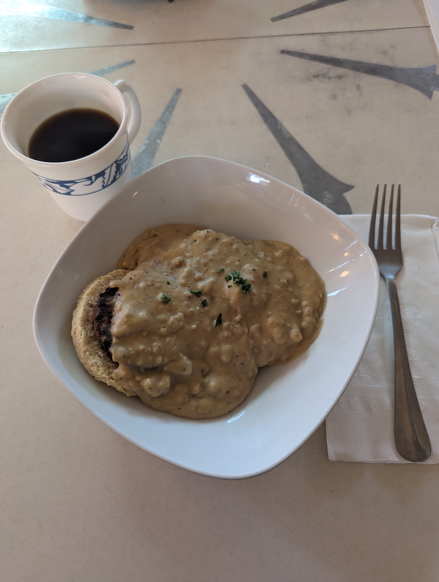 Read moreespresso tastes rich and smooth. notes are strong and not too acidic. they use cat and cloud as they’re roaster (which in my opinion is high quality). the aesthetic is quite different from any other cafe i’ve been too. it’s very 70’s themed decor and has lots of seating and cute tables and lamps. perfect for study or lounging in a comfy chair. the service was pleasant and laid-back. we ordered a macadamia nut liquid gold (a mouthful to say but a must try to drink), biscuits and gravy, and the “cheap trick” (avo toast). there has never been a coffee shop i’ve been to that offers macadamia nut milk, and it was so smooth and creamy. i was quite surprised. biscuits and gravy were mid. gravy seemed a bit bland and meh, but it was still good. they have good chunks of sausage in it. “cheap trick” was good. they give you just one toast (pretty small) and a side salad with this tasty vinaigrette. i put the greens on top of my toast with the vinaigrette drizzled on top. it really went well all together. they offer traditional sized coffee drinks as well as 8, 12, and 16oz sizes for a latte. i got an 8oz latte and it was just perrrfect. simply delectable. one of the best lattes in grand junction I ASSURE YOU. they have pastries as well (vegan) but the selection was pretty slim. they have wifi and some trinkets for purchasing. parking lot is small but doesn’t get too packed (we came on a saturday morning). really really recommend if you’re looking for great coffee and wholesome...