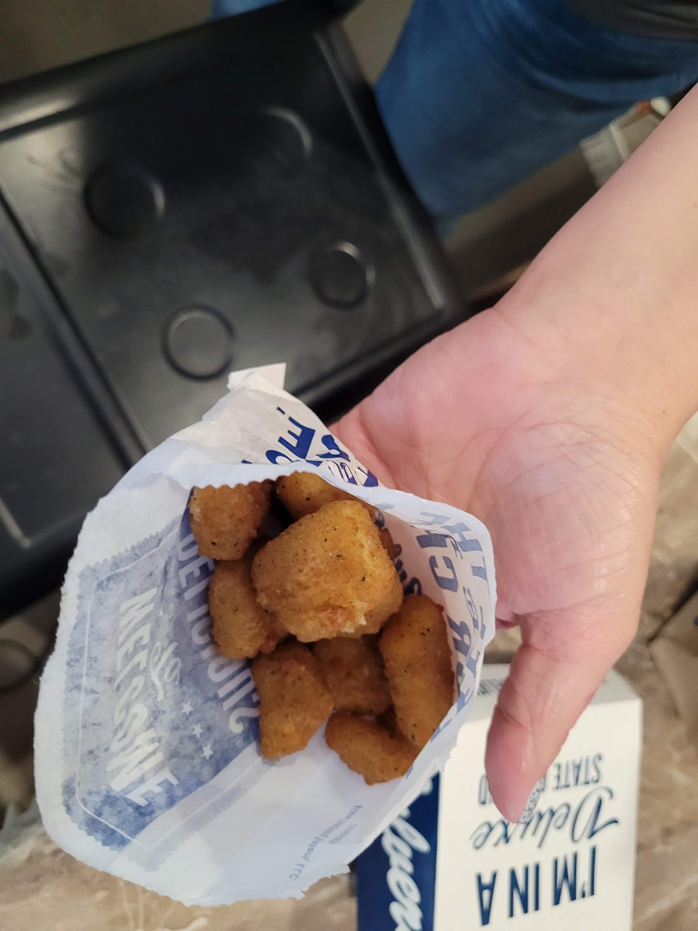 Read more4/27/22: WORST CULVERS EVER! I was soooo bummed out! The wait took FOREVER, and my fries were soggy (as soon as she handed me the bag I checked), and the burger was NOT HOT. And you couldn't PAY ME to try and have them fix it with how long everything took! I'll bet corporate would be very interested in learning they are having cars pull forward to keep their drive-thru times down. Not just one or two or three, but NINE CARS PULLING FORWARD. In my expert observation, they overloaded the kitchen, slamming them with back to back tickets when they had NINE PEOPLE pull forward. Management allowing this to happen is a shortcut and unacceptable in the restaurant/fast food industry and SLAMS the house, leaving employees and customers unhappy. The whole property is tiny, you have to enter from the back and go ALL THE WAY AROUND THE BUILDING, SQUEEZE THROUGH NINE CARS WAITING FOR THEIR ORDER TO GET BACK TO THE BACK FOR THE DRIVE THRU. Eliminate an aisle of parking for cripes' sake, if you need more room. Listen, I haven't had a greasy fast food cheeseburger in 6 months and was really looking forward to my meal and made sure I went to CULVERS so I didn't have any issues. However, THIS Culver's is chaotic and ridiculous. ALSO: If you've been to Culver's, then you KNOW you can get cheese fries. Asked for cheese fries and the guy taking our order was like, "Um, I mean, we have chili cheese fries." So I re-phrased the question and asked for fries with a cup of cheese and he said, "Oh! Yeah we can do that." As if their menu doesn't say Fries: Add Cheese for $0.50... I'm just... I can't LOL I was so hangry I ate the food anyways. And there was nothing wrong with it besides how long it sat before the food was brought out to us. Maybe have more than 1 person running the orders out? I'm not sure... but I WILL be contacting corporate so they can address...
