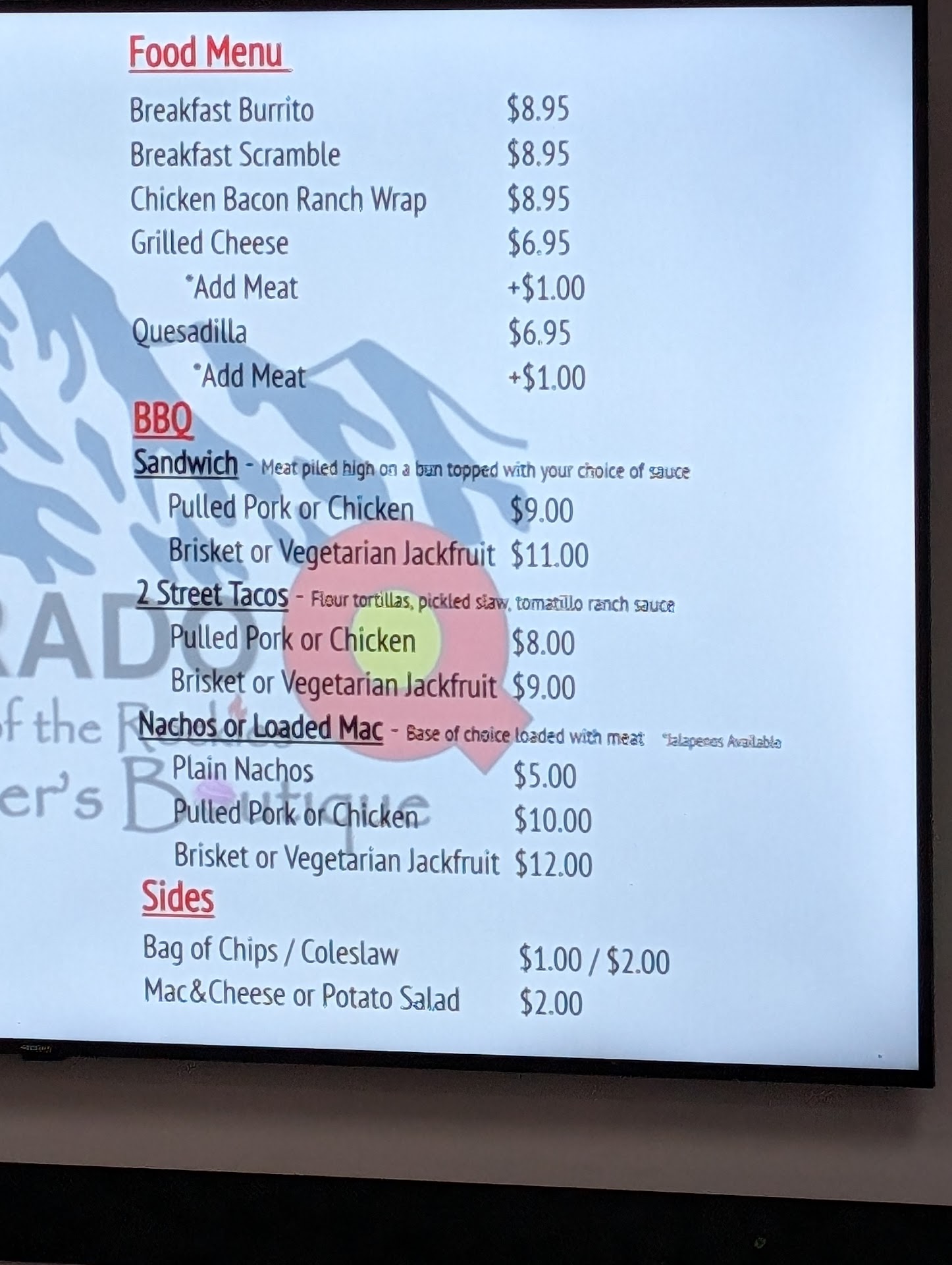 Read moreThis is the best place to get Gelato, but they would be better offering no food than what they are currently serving. The menu looks promising but everything is served cold and lacks effort. We were excited about the jackfruit options... and we shouldn't have been. The jackfruit nachos were just plain nachos drenched in neon orange fake cheese and overly sauced jackfruit. Inedible. The jackfruit sandwich was a cheap bun and, again, way overly sauced jackfruit... and nothing else. And cold. As other reviewers have said: skip anything BBQ. The owners are a delight. The other staff not so much. The menu could be so much better and was so disappointing. Gelato though? Amazing. Lattes are also good and CBD...