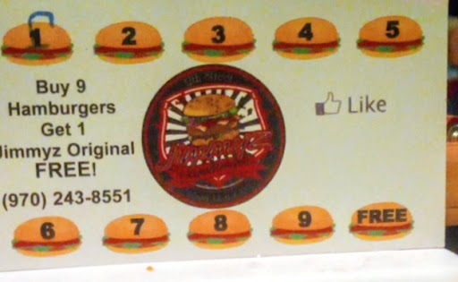 Jimmyz burgers are somewhat different than your Mickey D, and Burger King joints, they are a cut above regular burgers, I had the pleasure of ordering a French Dip Sandwich, that comes with a delicious flavor au jus for dipping your sandwich before it hits your mouth, this is a wonderful eating experience that you will be going back to Jimmy's hamburgers again to experience wonderful fast food, that you will telling your family and friends of this nice place. The sandwich that I ordered I will recommend to you all, it's miles away from from you regular hamburger, next time I probably would try the avocado burger it looks good on the pictures, and some people asked me If I had tried yet, well you see how people pass the word around when you have discovered how nice and delicious this food from Jimmy's is so, don't just take my word for it, pay them a visit and be a witness,like I am in referring anyone to this nice place. And it gets better, Jimmy's Hamburgers will reward you with a card that will entitled you to a free sandwich when you purchase nine burgers and the ten will be free for you, this is reward so, you can enjoy another chance to have a delicious sandwich , this will give you a chance to enjoy one of your previous favorites again. So don't take my word for it , take a chance for yourself and you will not be disappointed, my sandwich came with french fries , that by the way those fries are one of the best french fries I have tried,to include Mickey D's , BK and many others. My meal came with my choice of Coke.so my friends give this place a chance to prove you what a delicious food supposed to taste like, I guarantee you will came out with a smile and want to tell anyone of this place. Good eating my friends. The restaurant is located at 1840 N. 12 st. In Grand Junction. Bon...