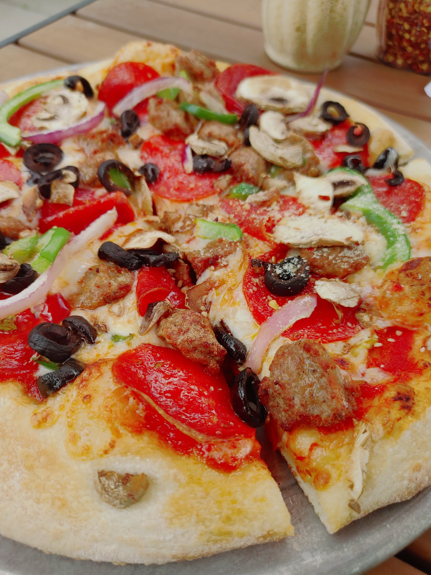 Ordered a pizza and boneless wings for myself and my wife got a spaghetti. The food was absolutely horrible. The pizza was like gas station pizza that’s been under the heat lamp for too long, and gave me incredible heartburn. I’ve had better pizza from little Caesar’s. The boneless wings barely had any sauce on them, the spaghetti that my wife received was a kids portion (she doesn’t eat much) and it was a dry, undersauced blob of something that might resemble noodles but not quite... and it was cold. She ended up eating one slice of my pizza that I ordered. What’s sad is that the toppings are delicious. The multi meat pizza I ordered had andouille sausage and Italian sausage and pepperoni I think... and they were all quality. The crust you could tell would be good if the pizza was fresh. The sauce was a bit heavier on the spices than I would prefer but even what little didn’t dry up TASTED good..