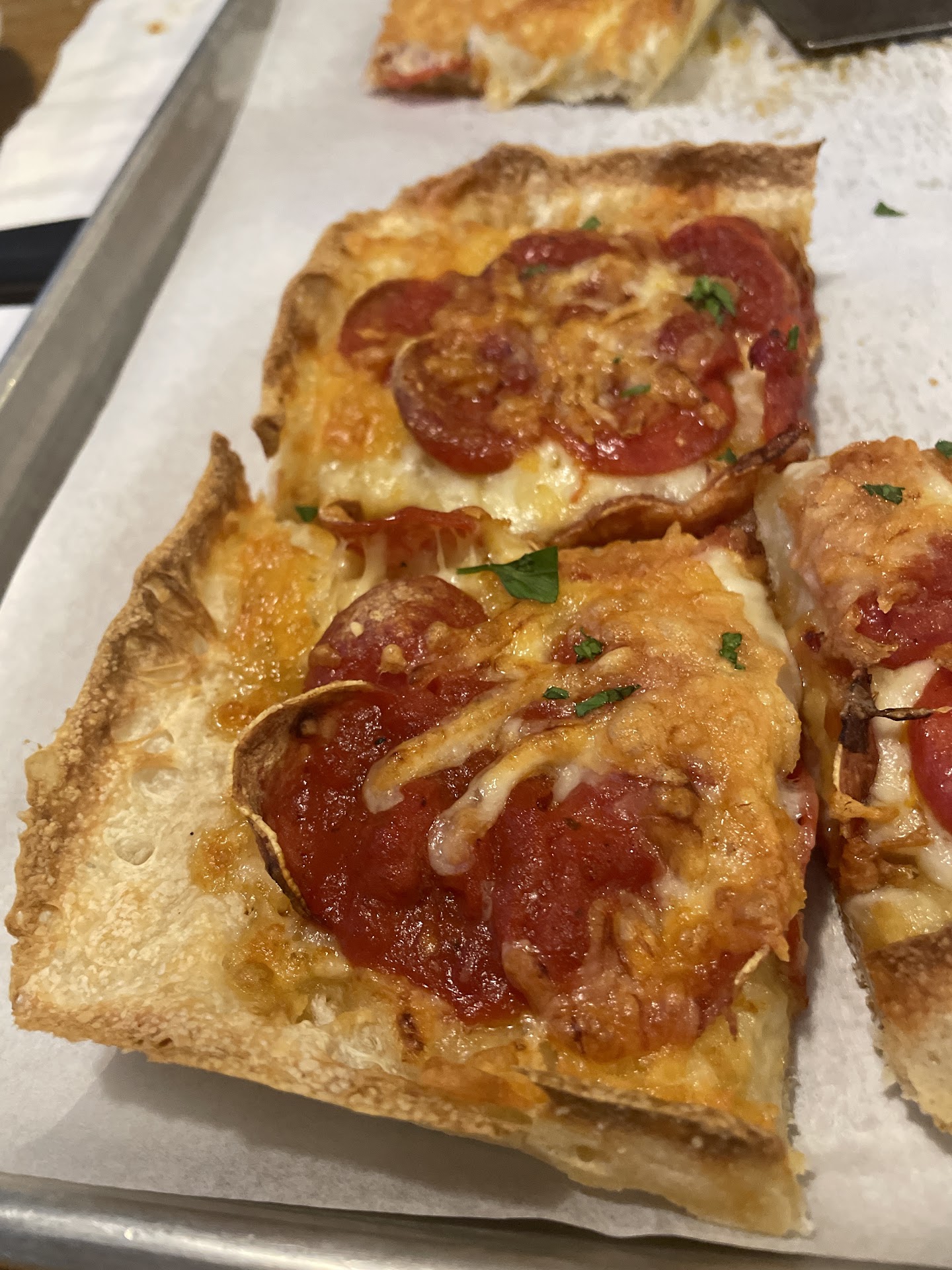 Went last night with a group of friends, their choice not mine. It was very loud when we went in but our table was reserved and set up very nicely. It took a little while to get our menus and drinks because like every other place in the valley they were extremely short staffed. We ordered three different appetizers. The cheese sticks were cold and not completely cooked, the artichoke spinach dip was burned on the bottom, the meat rolls were kind of doughy in the middle. Then the pizza arrived, it was delicious! Unfortunately it was not very warm but was still tasty with generous toppings!
