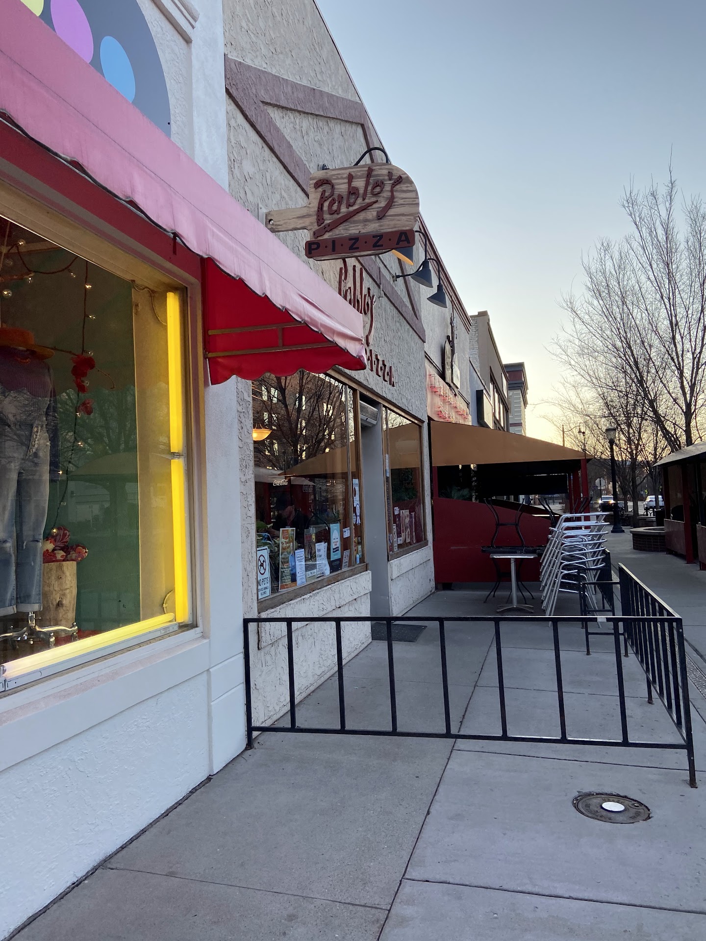 Ā Ā Ā Read morePassing through town and our hotel clerk suggested Pablos. We were concerned about finding parking down town but easily slipped into an empty spot right across the street. Outside dining for those who want that. I noticed a āstudent specialā so good for the young and broke. My wife ordered us the Pesto special and added sausage and a spinach salad. Salad was big enough for both of us to share and everything in it was fresh and delicious. The pizza was great and we surprisingly ate the whole thing. The art in the wall looked local and cool and a great way to support local artists. HERE IS WHAT IMPRESSED us the most. There were four young (college aged?) employees working. When things calmed down they sprang into action with an energy cleaning tables, folding boxes, wiping the register area, taking out trash and making the place look spiffy. I know this age group gets hit hard for being lazy and entitled but these guys were working like the place was theirs and not a boss appeared to be around. I never saw them with a phone in their hand. They provided great customer service and seemed to enjoy each otherās company. Hey boss: you have a great crew that really enhanced our visit. We were there Thursday, July 29 at 2:30. Too bad we live 2,000 miles away or this would be a regular...