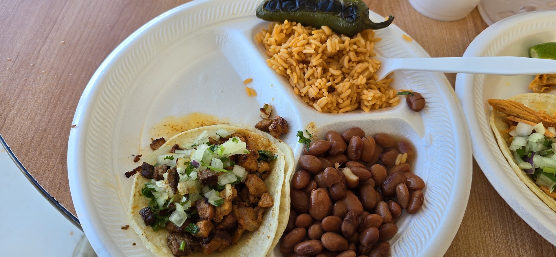 Ā Ā Ā Read moreI might give 4 stars in another location with more mexican options, perhaps, but this place is good! They make good food, and their chicken is definitely the unique thing to come here specifically for. That said, I actually find the chicken meal to be a lot for one person for lunch, and so have gravitated towards their pastor and pollo tacos, which are great and still come with the signature whole pepper (I get four tacos, not sure if there is a threshold at which the pepper appears). The small touches make this place both feel nice and local, and also the whole pepper that comes with various menu items really keeps me coming back because it's like rolling the dice on the spice meter, which is fun and delicious. Also, as others have mentioned the pickup window is perfect and safe for...