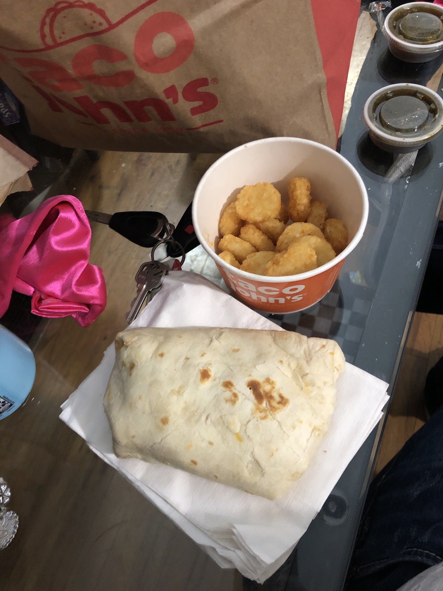 I was greeted very warmly. The staff was helpful while I was ordering as I have been to one a long time ago and did not really remember what was what. The food was great, like really good. I got the meat & potato burrito meal with guac. The burrito was great with the (I believe) potato olés in the burrito. Then I had the potato olés (they were both in the burrito and the side) with guac... that was the best side that I had had from a fast food chain, better than even the McDonald's hash brown. I not kidding the potato olés are like smaller and crisper McDonald's hash brown which make them that much better. The facility looks clean and is in good condition and as a native (Coloradan) love the old D bronco helmet in the entrance. to add look like they have a great breakfast selection which I will be trying out here soon. Now that I have been here and know a little more I will highly consider Taco Johns for meals...