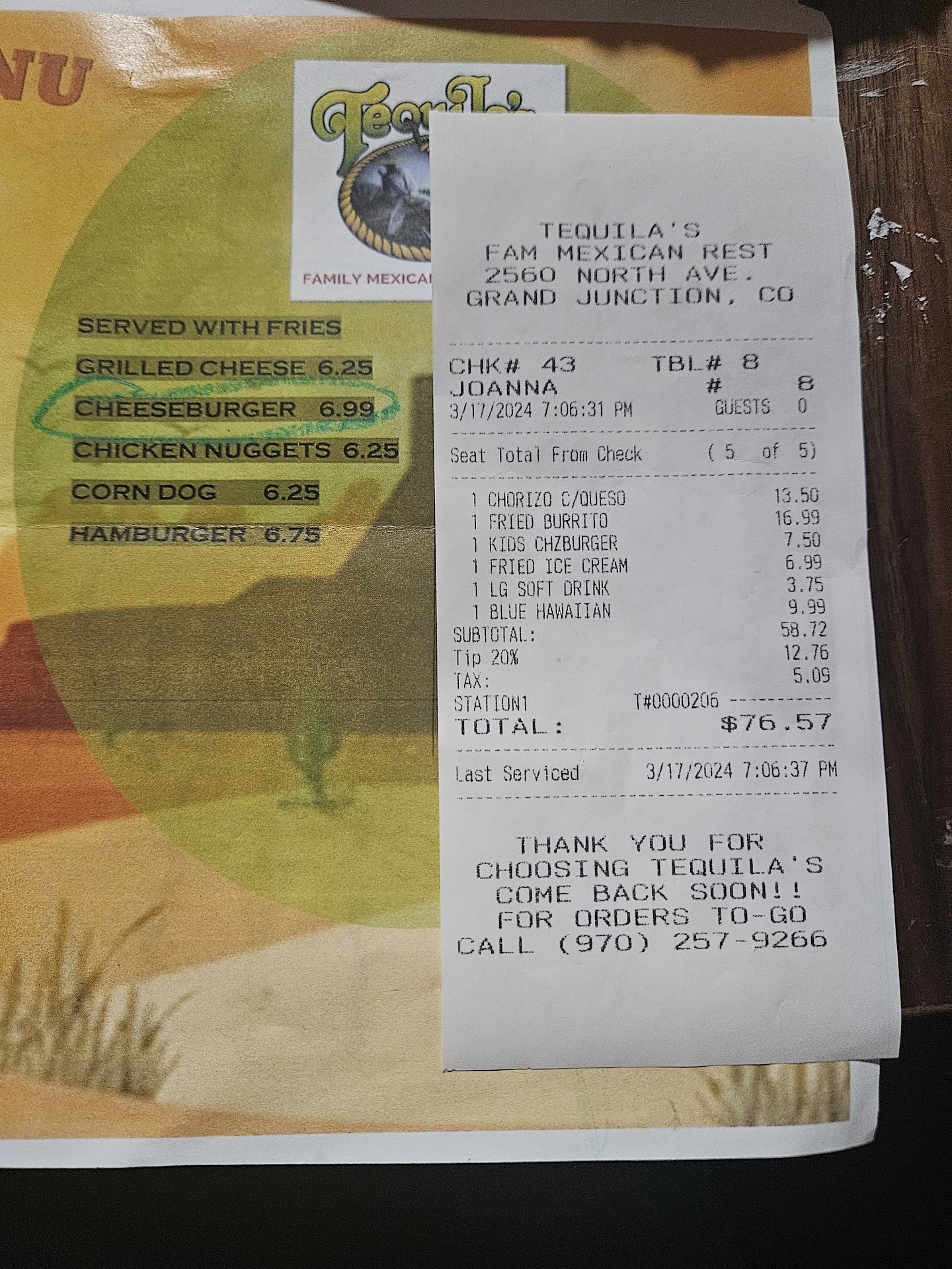Read moreI would have loved to give them 5 stars. The food was delicious. We came to my sisters birthday dinner and had my own separate tab, for myself and my child but no one left happy. Only food complaint on my side was how shallow the dish of Queso was for what they charged. My biggest complaint and issue is that once the meal was finished I was over charged. The kids menu from which I ordered said 6.99 for a kids cheeseburger. And then was charged for a large fountain drink when my child got a very small sprite (no refills were offered to her) the bigger cup in the picture for comparison was water. When I brought these discrepancies to the waitresses attention I was told that the menu i looked at was not the correct prices and I was charged correctly. Apparently a very small kids cup of sprite (with no refill) is the same price as a large soda. Who knew? It doesn't say this on the menu. Well the waitress refused to honor the listed menu price of the kids cheeseburger or even offer a second drink for my child to compensate for the large I was charged. She even predetermined her tip for me. I wouldn't have minded paying the over charged prices or the predetermined tip for 1 adult and a 5 year old child to have some good Mexican food if they would have honored the listed prices and tried to make it right but sadly i had them remove the tip. Even a few others who joined in with separate tabs were confused and outraged by the over charge for the...
