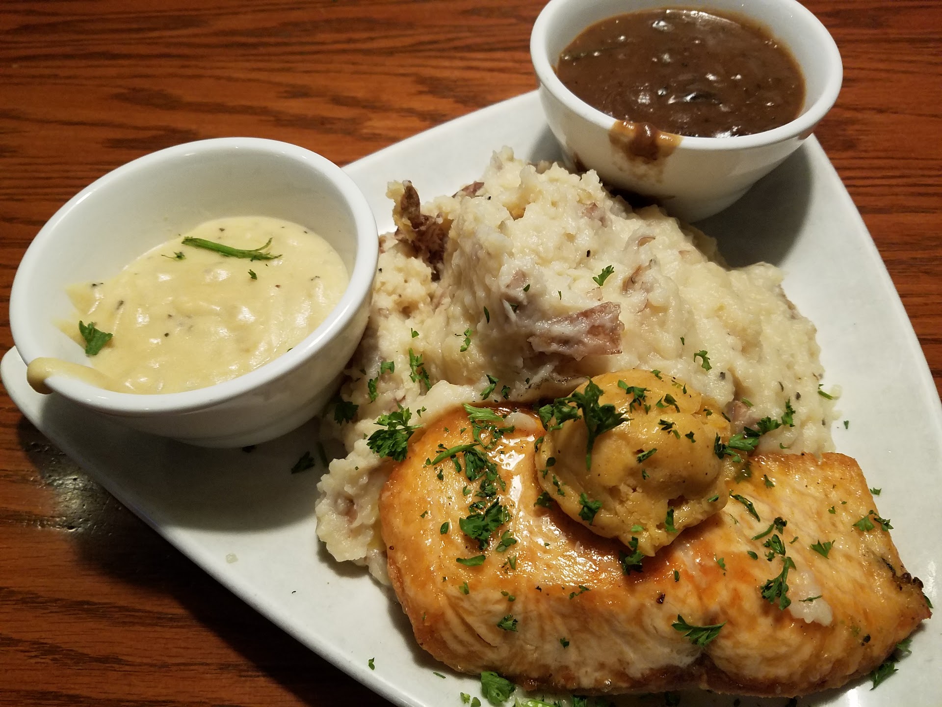 Unfortunately, when my burger came this time, it was absolutely cooked rare. The burger was bright pink on the edge of the burger, it appeared to have been just seared externally and then plated. My server took notice, apologized, and put in for a replacement burger. The manager came over shortly and apologized and comped the burger for us.