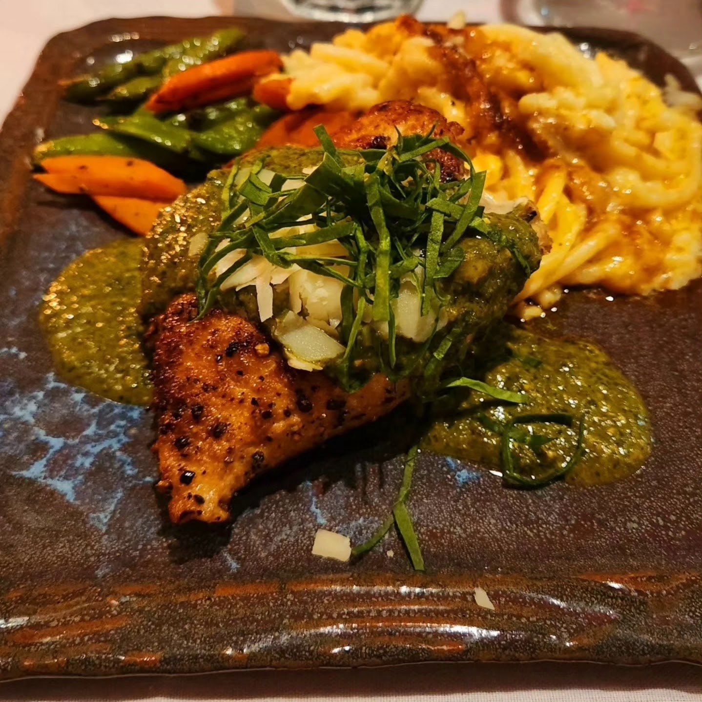 My husband and I went in there last night trying to enjoy a nice meal. Our server was amazing, i sincerely appreciate her, my husband ordered the pork loin and to him it came out undercooked, i waved over a tall black hair man as im sure our other server was busy, i then tell him that my husbands food was undercooked, we even had to look it up just to be sure and we presented it to the tall black haired server with glasses, it was almost like an argument cause he then decides to say “no it’s medium”, and so my husband decides to then say to the arguable server in a kind tone as I’m sitting there watching, that he would prefer it cooked more. They bring out a spare plate to put the “medium” cook pork on and he then takes it to the chef, our female server tries to tell him that she would address the concern to the chef but the other server was just rude and said he would do it. He makes his way to the chef and my husband sat in the corner but I’m sitting right next to the male server and the chef lecture about the food..THIS WENT ON FOR A WHILE TIL THE FOOD WAS DONE BEING COOKED. I’m sorry but that to me is sincerely unprofessional, handle a lecture about someone’s cook choice when no one is around if it’s that much of a big deal for you. Our female server then tried to tell them “everyone has a preference on how they want it done, I know I prefer mine done a certain way,” finishing the conversation and she brings the pork cooked-to my-husbands liking back to us. The only one hot and bothered was the tall man with glasses who wanted to argue about food and the chef. To us if the pork comes out looking a dark shade of pink and cold compared to pork that seems edible and warm, we just won’t eat it. We have had 2 amazing experiences here but sadly our third...