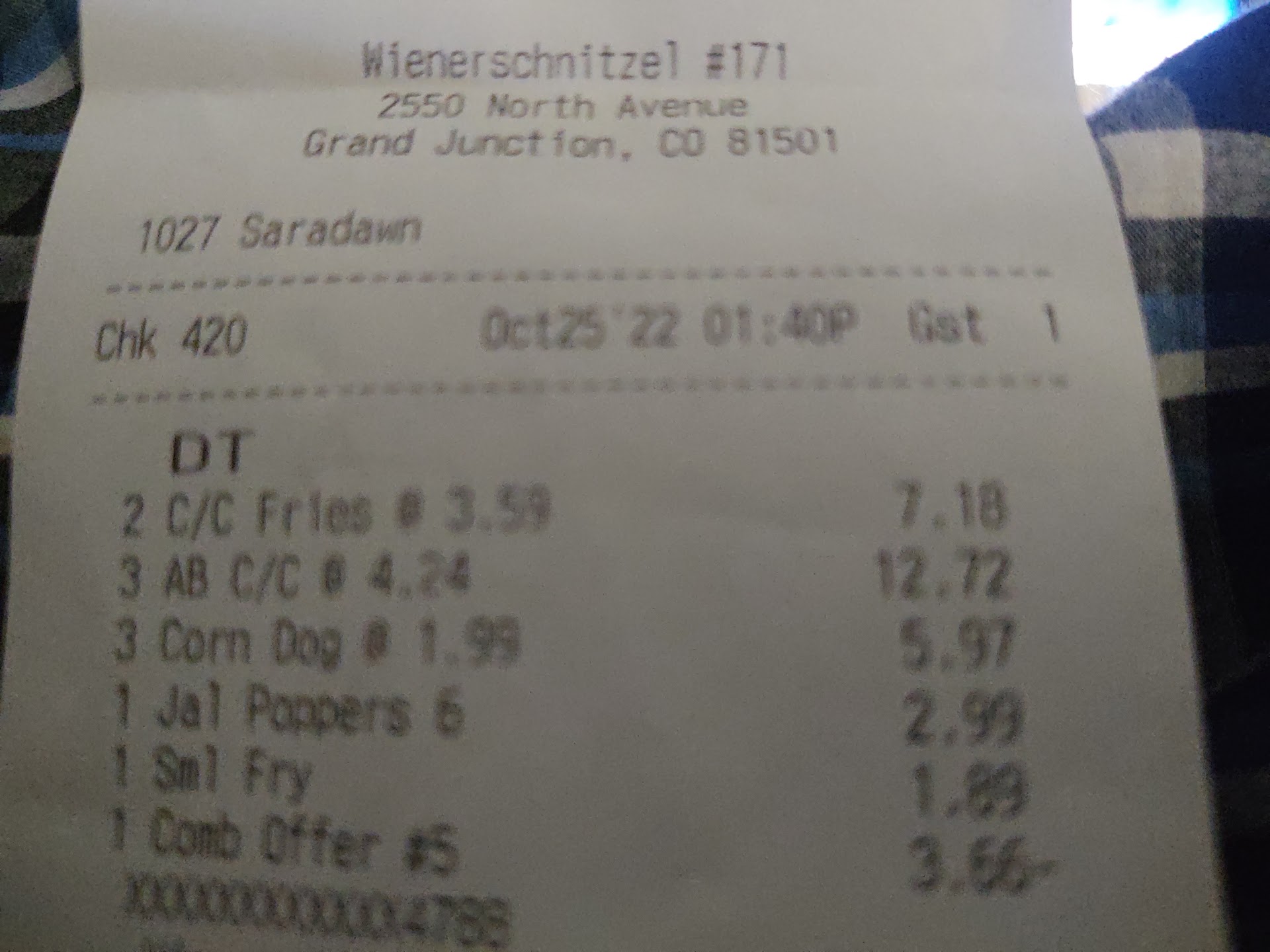 Read moreI don’t know who has to hear this but your employee that was working the night shift at 5:35, I walked in got two chili dogs, and when I got to my car I looked at how perfect that employee folded them and the part that really tripped me out was that the wrappers were clean no chili spilling on the wrapper or being smashed! They were so perfect, you guys just made my life just that better to keep moving forward, and that there is always hope out in this world after all! Thanks Wienerschnitzel employee for completing a small part of my life and Existence! (the hot dogs were alright, but the presentation was just so on point) that’s why I will give you 5 shiny stars for...