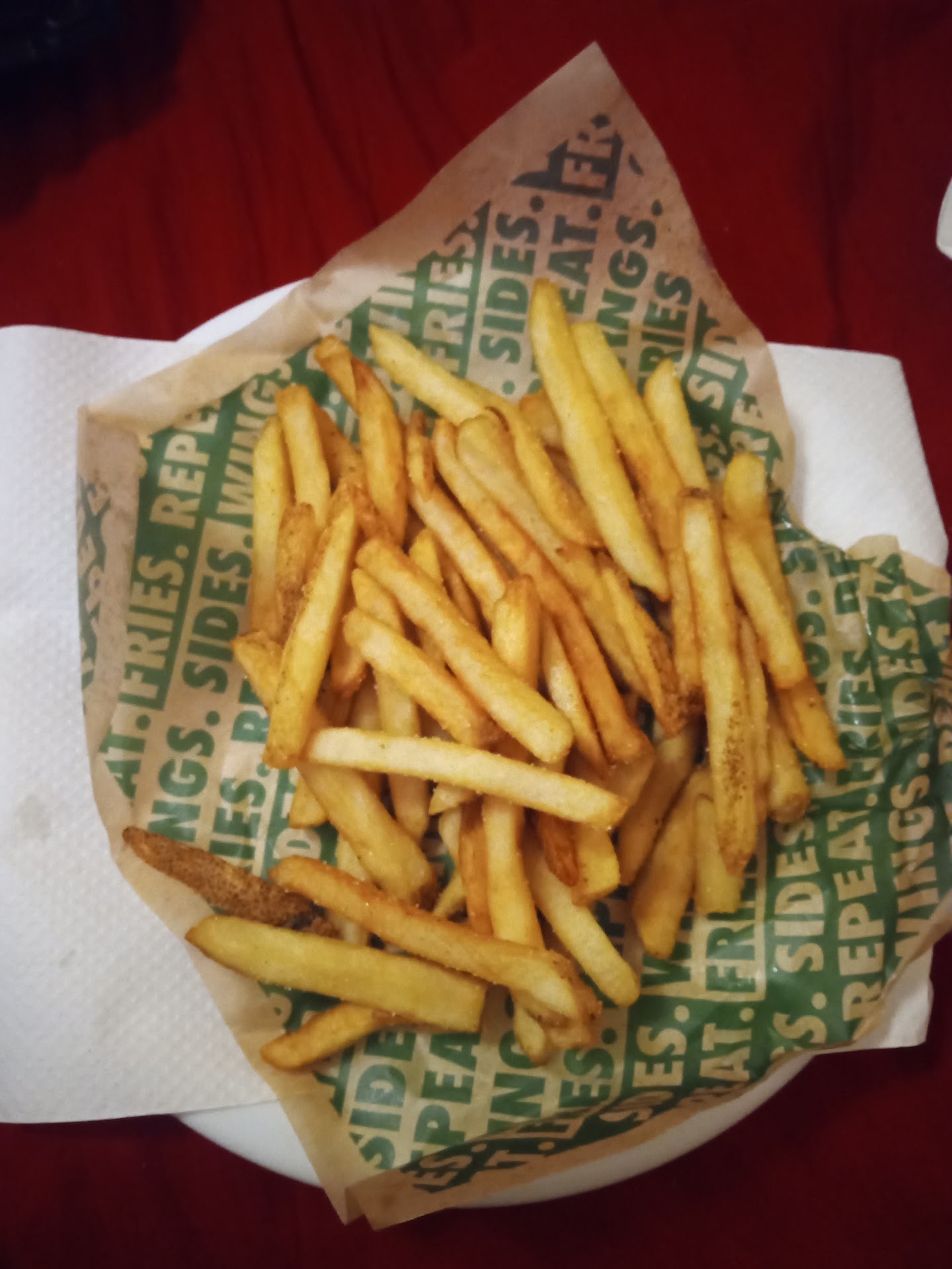 Anyway the actual food! I ordered a 10 piece wing and got 5 Hawaiian flavor, and 5 bbq. They were decently good, however the bbq wings I ordered were like halfway covered in sauce, idk if that’s normal but that’s what I got. I also got a voodoo fries and they were pretty soggy but again idk if that’s normal for this place it was just not what I was expecting. I also got a drink and they have a little self serve soda fountain and more than half of the soda options were broken. I told one of the girls working there and she was very kind about it.
