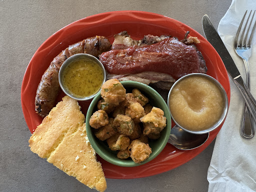 Read moreI am not someone who typically blasts a business but this was possibly my worst overall dining experience in memory. Where to start? Everyone in our party (5) ordered different versions of BBQ plus 1 hamburger entree. We had 1 gluten free menu item ordered. 3 of the items came out "correct" with the exception of the gluten free entree did not come with the correct bread. One 2 meat combo came out with the wrong 2 meats so was sent back to fix AND the hamburger still had not come out with the rest of the food. 5+ minutes later, the hamburger came out...still no 2 meat meal or gluten free bread. Over the next 15 minutes, the waiter came back multiple times with no urgency to get my food (this is BBQ that should take 2 minutes to put on a plate). Finally, we spoke to the manager, Sue, who went to find the missing food. 5 minutes later, the correct meats came out with the wrong sides. We had to ask again, for the gluten free bread. By this point, everyone else was finished eating so I was left to eat by myself. The food was terrible, the brisket was half fat and the ribs were overcooked and mushy. The potato salad was warm. The only apology offered was a $10 gift card which took another 15 minutes to get once we asked for our check. To top it all off, the "corrected food" came out as we were paying our check, at least 30 minutes after we originally sent it back the first time. The food was not good and the...