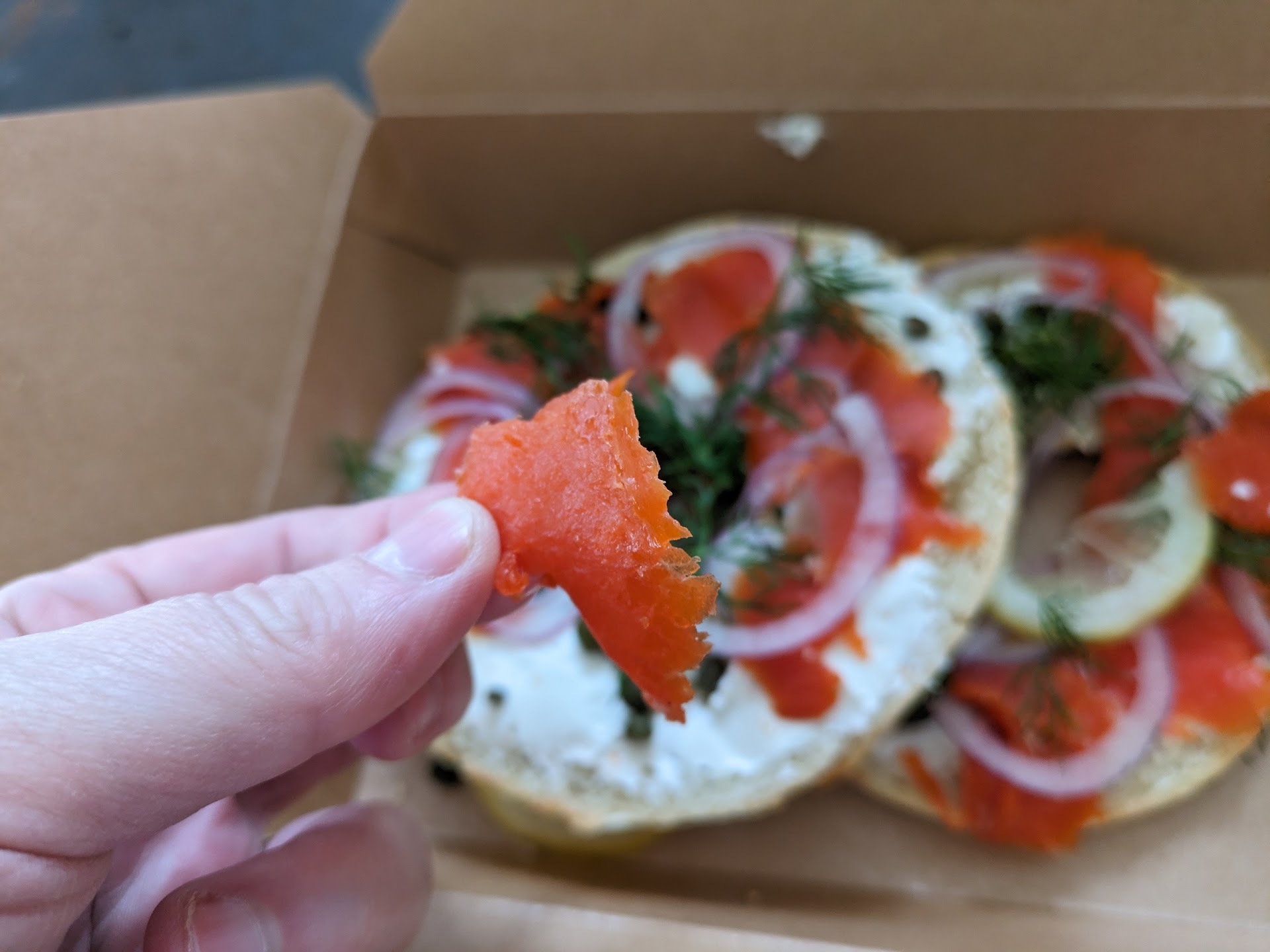 Ā Ā Ā Read moreDon't get the bagel and lox here. It's so bad it's actually alarming. I'm a bagel and lox fan, I've had it hundreds of times, in deli/bakeries from New York City's Russ and Daughters to Big Apple Bagels in East Lansing. The one they serve here at Flour Child is the worst I've ever had. By a long shot. The lox (brined, smoked salmon) has the sticky, leathery feel of a fruit roll-up and it was dark and dried out enough I spit it out. It has the distinct texture of lox that's old and has been left out- and believe me, I've eaten it often enough to be able to spot it. Even the gravlox I've had, which is like drier, over-salted lox on steroids, never looked like this. Plus, they don't serve it like people normally do, with a solid slice or two of lox in the middle, it's more like they lightly, thinly shave the lox onto the bagel. It's very weird, just small little pieces scattered across a light smear of cream cheese. Like, I was honestly shocked at how bad it was, I didn't even know it was possible to mess up a bagel with lox that badly. I suppose you can say they serve it in a way that looks pretty, like it would make a good Instagram photo, but if you actually like eating bagels and lox, they have made choices in their preparation that will leave you confused, disappointed, and just a bit...