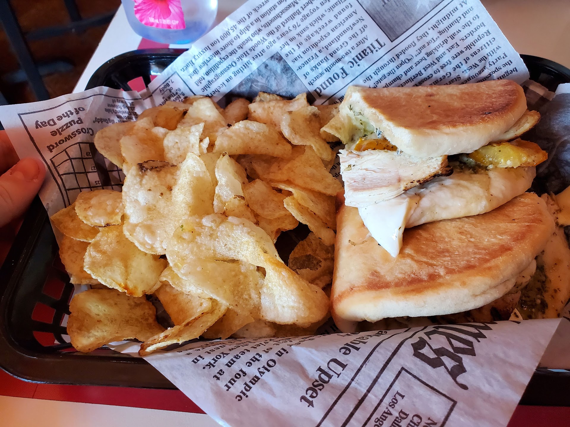 Read moreThe atmosphere is very calm and welcoming, I really like the more sustainable options they have for mugs and dishes. The menu is bright and well written and easy to read, they also happened to have decaf and at least 3 sugar free options for me to choose from, as a diabetic that loves coffee I was very excited. They had games and chalk available to use while waiting, and an entire outdoor store collection to peruse (we didn't get a chance this time to stop and check it all out). I got their pesto panini and added chicken, it came with some good homemade style potato chips, and the chicken noodle soup I ordered on the side was just the right amount of salty and earthy. The workers were very nice and friendly, we will absolutely come...