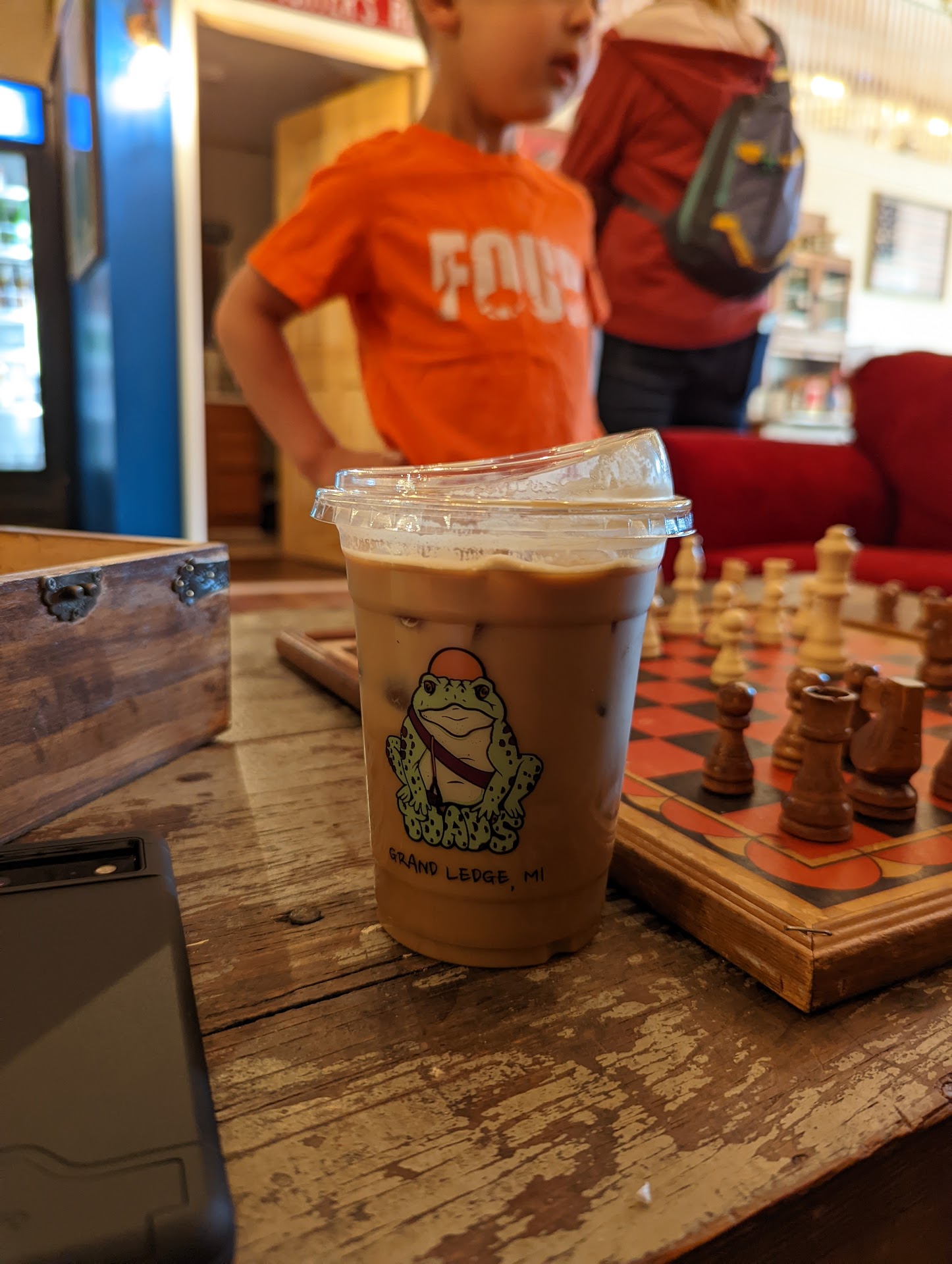 Read moreTo echo another reviewer, Toads is thee place to stop when you’re in Grand Ledge. From the cute sign ( a friendly toad), to the cozy sportsy decor, the vast and creative drinks and food menu, and the fun little gift shop area, Toads is an experience and I’m so glad I discovered it. My latte was delicious, I had an apple themed drink with oat milk, the coffee itself tasted rich and the flavors were just enough to compliment it nicely and give me the taste of autumn I’d been hoping for. I learned their ice cubes are also not made of water, but of coffee! This keeps the coffee from getting watered down, genius.