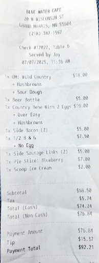 It was about 10am when we got there. We were relieved to see they serve breakfast all day! Having been in survival mode for the previous 7 days, we were looking forward to big flavors and good portions. Blue Water Cafe didn't disappoint.