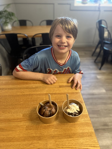 This place is one of my favorite ice cream shops. We stopped in last year on a whim and got their golden milk ice cream and it was amazing. The small batch ice cream every thing is soo good. On this trip we were there 2 nights and got ice cream all 3 days. This round we had golden milk each day for my wife and I as well as salted honeycomb together were quite lovely. I will state I am a big foodie but not super into ice cream so it has to be something amazing for me to go back 3 times. Just saying. My kids got s'more, lemon sorbet, also honeycomb, and vanilla. They were all amazing, something about small batch that just sets it apart. The flavor of golden was a perfect blend of cinnamon tumeric and cardamom. The vanilla was creamy and flavorful. The sorbet my son loved, kept saying he wanted to ask for recipe which was stated on side, not portions but lemon, lemon zest sugar and water. Sadly I did not remember to take pictures. The waffle cones are amazing. Day 2 we did cones with toppings and the kids loved them. The cone was sweet but not to sweet and had a very noticeable flavor but paired well with all the ice cream. It was great texture and left you wanting more... they should give u an option to have flat waffles added to your scoops. Maybe they do but they were delicious. If you like ice cream and are in grand marais this needs to be your stop, honestly it is something special. Sorry for only the pint that made it home, all I have is pictures of kids with...