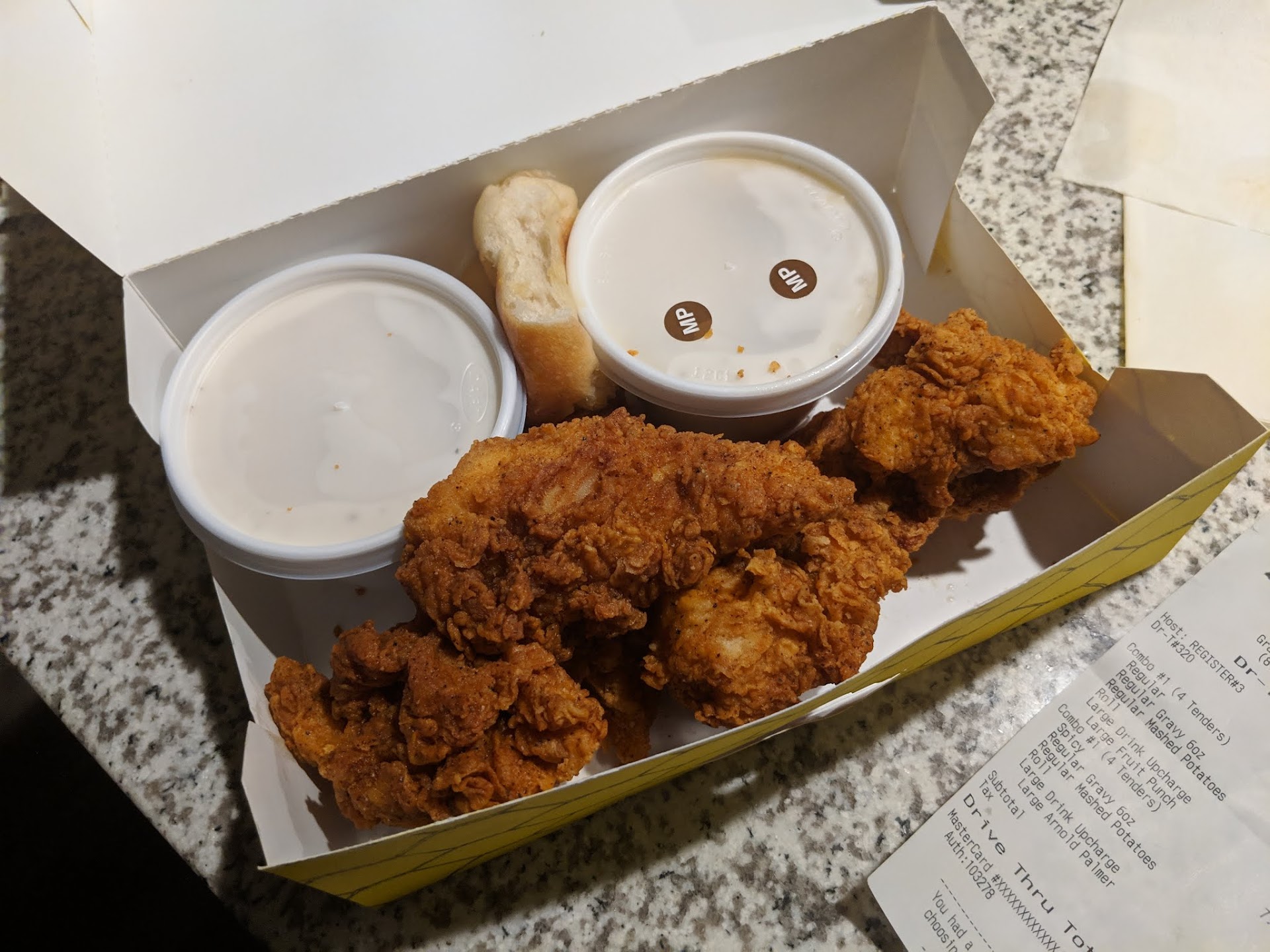 Placed my order of a 2 pc fish dinner combo and a 2 pc breast dinner combo the little girl working the mic and window had a bit of a attitude she told me that they didnāt have breast it would be 9 minutes and asked if I wanted to wait and I said no give me the 4 pc tender dinner and then as I was waiting for my order I seen them take my 4 pc tenders from heat lamp and throw them in the fryer with my corn nugget and then put it in the box. Got home and the chicken was so tuff that I was not able to eat it and so I called the store and asked for a manager I proceeded to complained and ask if they always let the chicken sit under the heat lamp and when some one places a orders throw the chicken back in the grease and cooked even longer and she said no I said well that is what you guys did to mine and she never even acknowledge I said anything she never responded with anything not even a I am sorry or anything but did asked if I want to bring it back and get another meal and I said no I am already home and so she took my name and said we owe you a 4 pc tender dinner and I said thank you I appreciated it. She then did not even acknowledge I said that and hung up. The service was terrible with terrible attitudes there is no professionalism and my chicken was even worse. Their attitudes present that they donāt even care or want to be there. Always ask for freshly cooked chicken. Lesson learned I should have waited the 9 minutes for the chicken breast which was my original order but was tired and was...