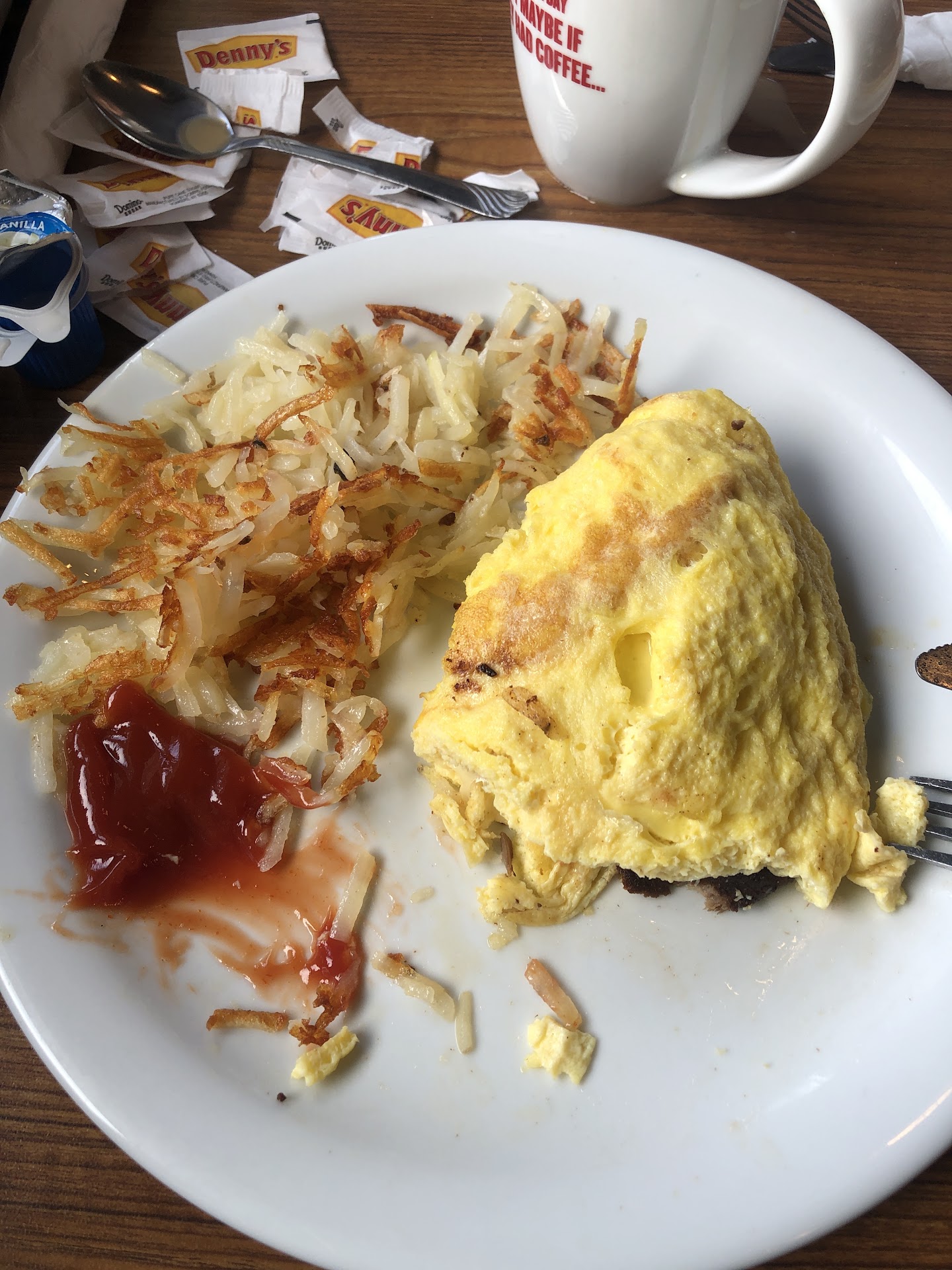 I get it.. some cooks are new.. they havenāt been properly trained on the Dennyās way etc.. HOWEVER, instead of the manager apologizing she defends the greasy plates and says āchorizo is greasyā ~ NO PRINCESS chorizo the dennys way is not that way. This a a food chain. A franchise .. not a food truck where you can just freestyle it. There is an expectation AND wait for it⦠even the hush puppies were dripping in grease. And the manager says.. wellā¦they use the fryer. NO SH*% I KNOW HOW TO COOK. I said to myself. It wasnāt even worth the word exchange. Itās too early on a Sunday. I know Dennyās food.. anyways.. if you have a certain expectation in how the food should taste.. this IS NOT the location.