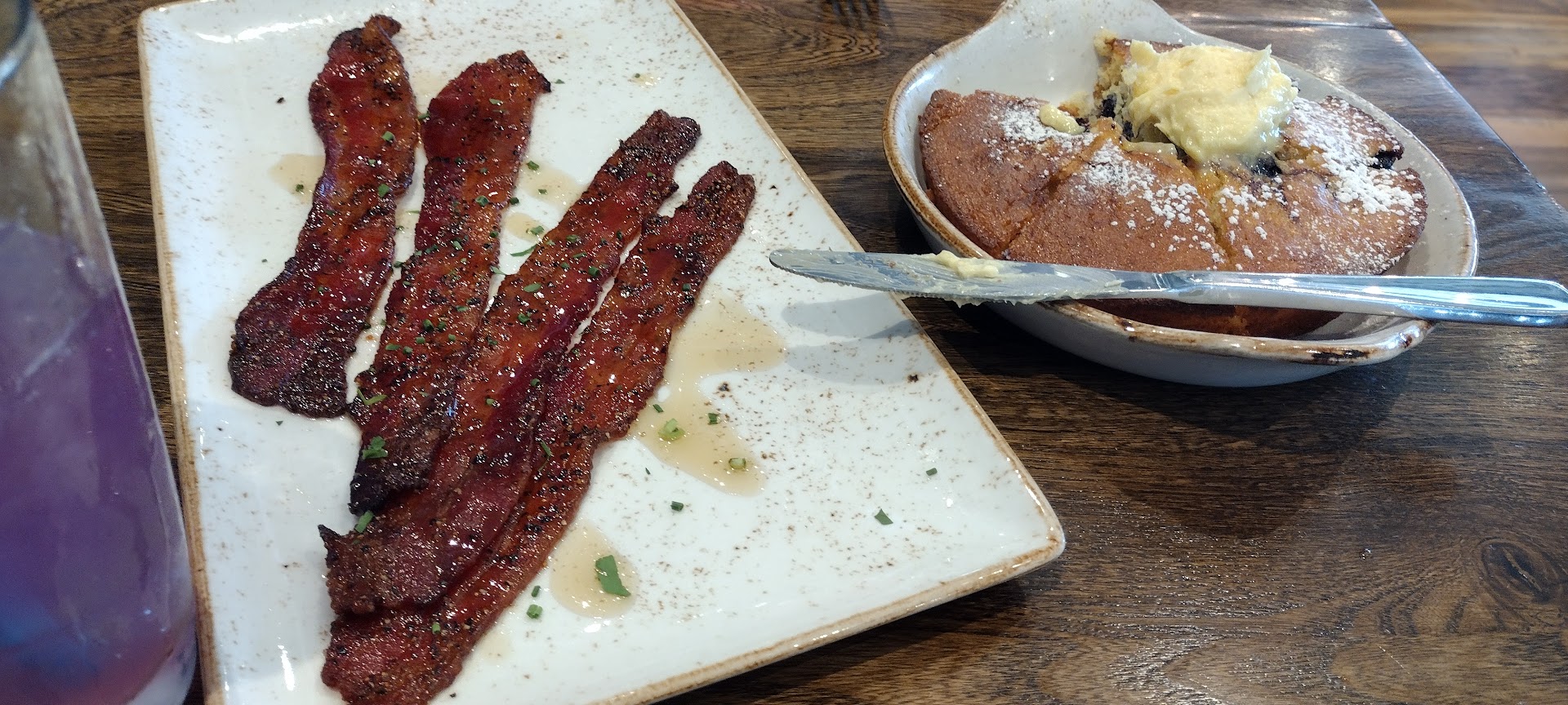 Terrible food. $50 for a chickichanga (Which has NO CHICKEN, only random fillers inside which is ironic bc it’s has chicken in its damn name), a skillet which about the serving of a kids meal (but they use filler bread to “fill you up”) that tasted like burnt potatoes which also included cheap trash eggs but claim they use premium eggs, and a $10 pancake which crumbles when you cut it w a fork… which makes it completely un edible…. & don’t make me get started on $10 for 2 little cups of coffee that tastes like it’s been sitting in the pot for at least a whole day…. Not one to compare but honestly you can go to Waffle House and get WAYYY better tasting food than this crap for a fraction of the price.. not to mention the cust service was not up the par with the prices… we had to WAIT in line for a WHILE to pay just bc the cashier was “talking to an old friend” and completely ignored our existence…