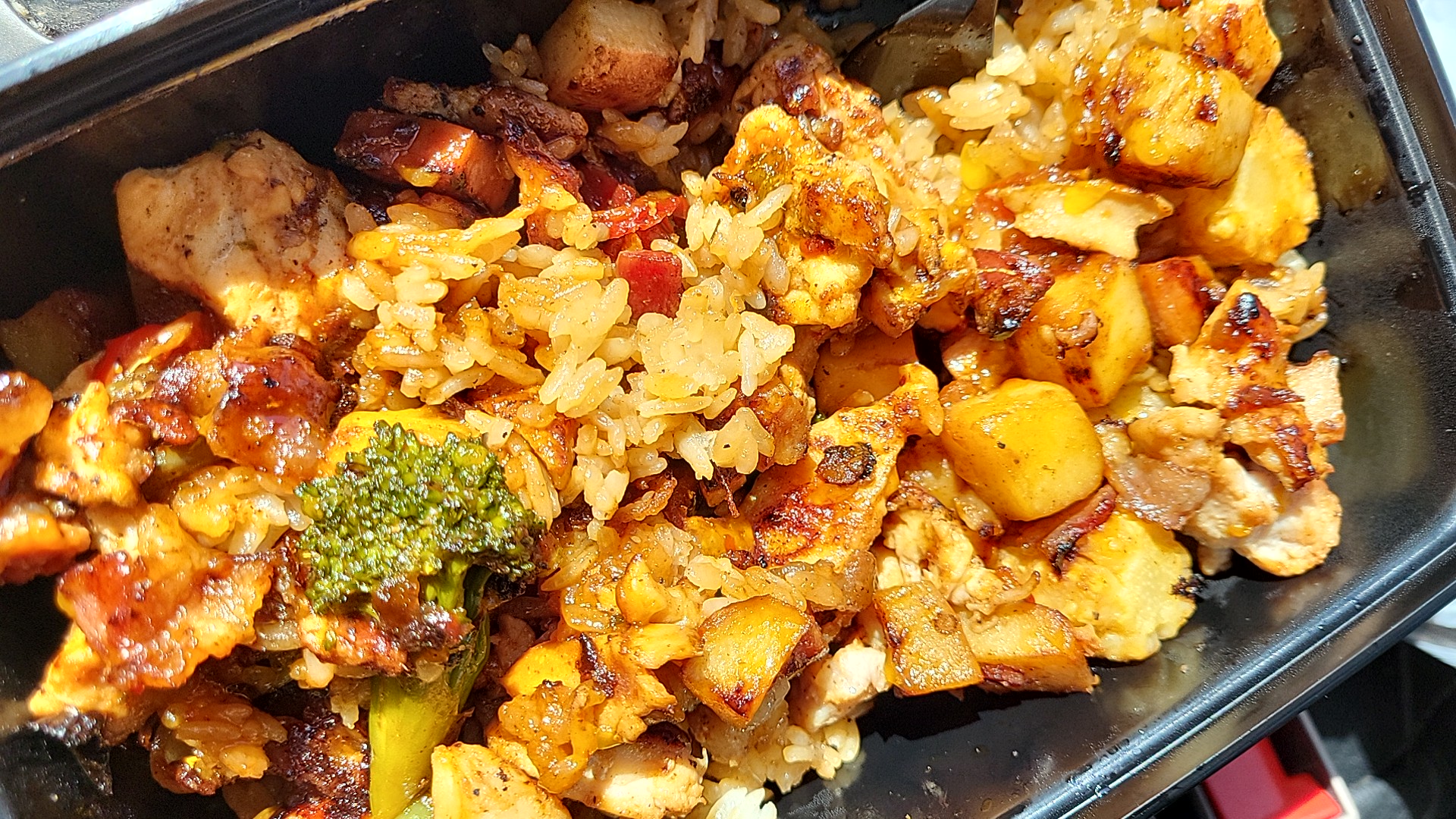My daughter's teriyaki was nasty and tasted plain and bland, very.... Americanized. I got something with steak and hash. The bowl barely had any food and the meat and hash are tiny, tiny little cubes unlike the pics. The hash tastes very freezer-burned.