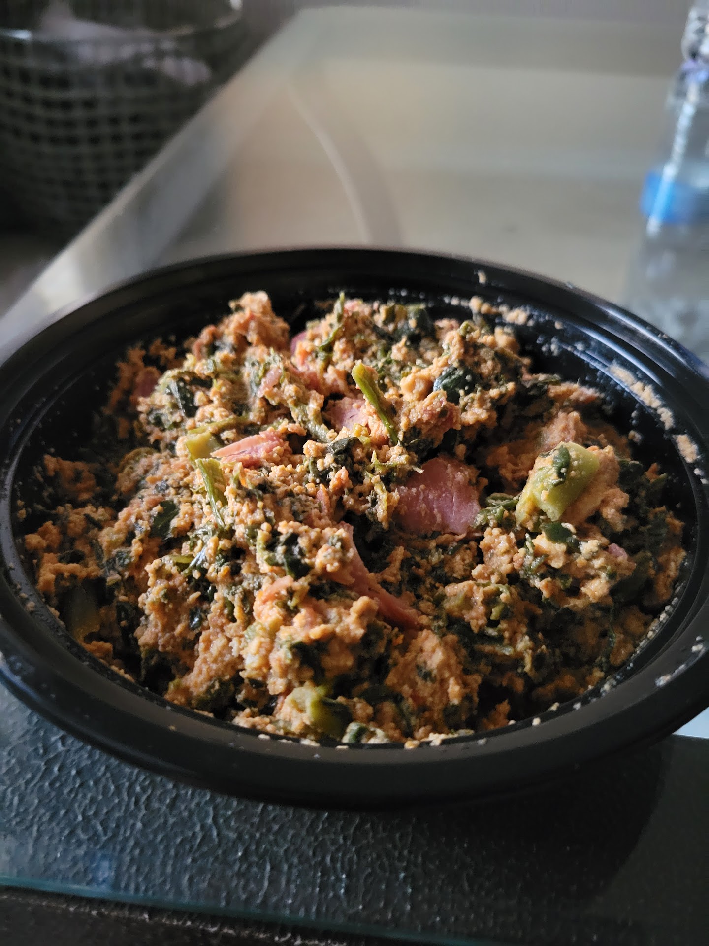 I live 25 -30 mins away from the restaurant. No form of delivery service was available to my area, so I was forced to drive there. I ordered 3 types of meals; Fufu and egusi platter with goat meat, Whole Tilapia & Fried Plantains, Ogbono sauce & Goat meat.