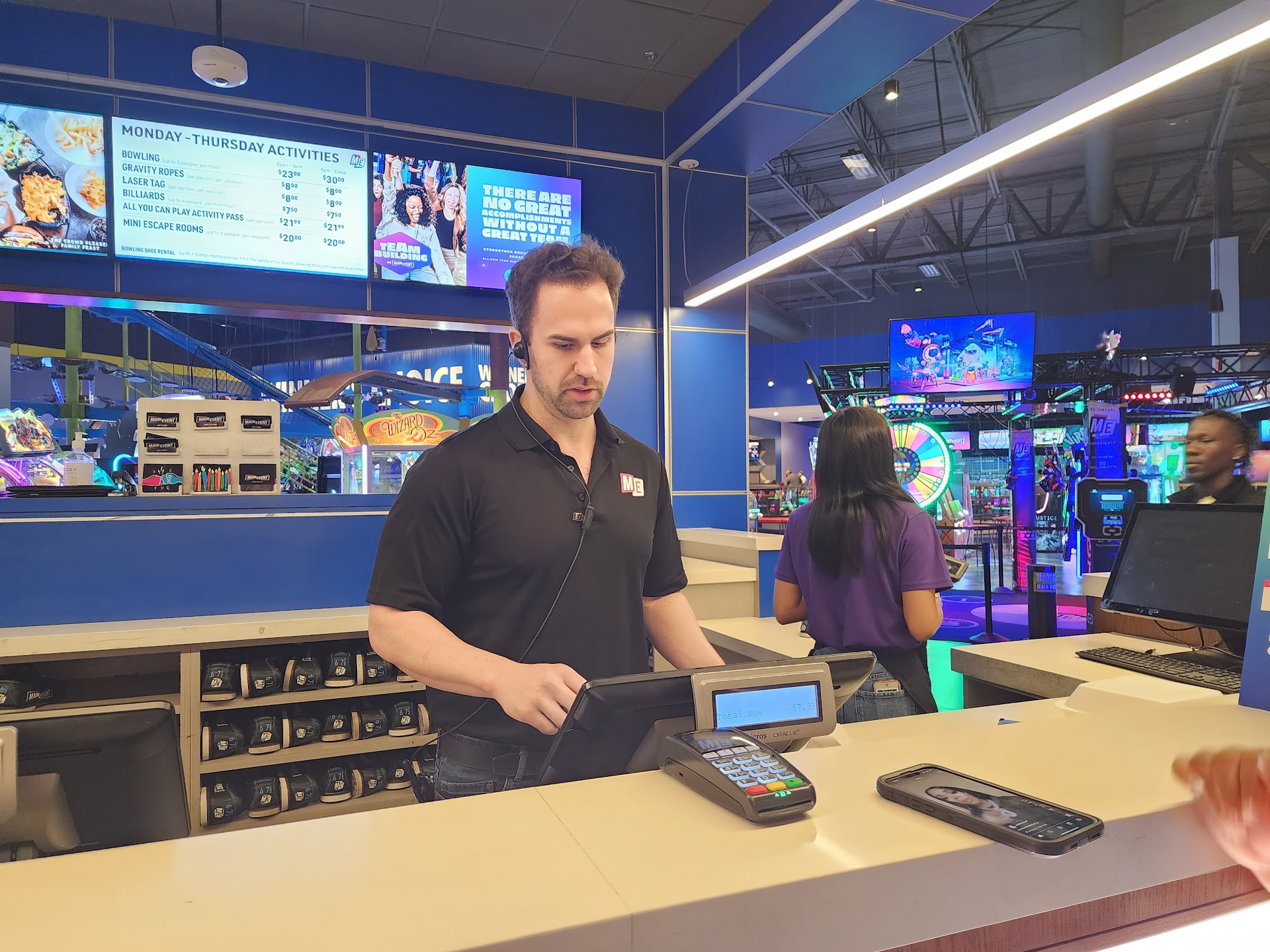Overall, terrible experience and that restaurant area is in need of a good manager. They have food on the menu that is fast to cook and they should be cranking people out of the restaurant area as fast as possible to get them spending money on games, not sitting there for an hour and a half. You would think they would have compâd or discounted some of the meals after all that, and they probably would have if we wanted to raise a stink but by that point we just wanted out of that restaurant and to go play some games which is the whole reason...