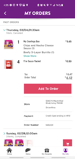 Read moreThis location does WHATEVER they want. Sign says open until 2am but they stop answering the speaker at 150am? My mom is a GM at another Taco Bell location and I know for a fact that is NOT ALLOWED. I placed a mobile order to pick up at 145am, there was a car in line when I arrived they waited then drove forward I assumed they had ordered so as I pulled up to request my mobile order and I hear the car in front of me honking their horn. I proceeded to wait and then I called the location several times. No answer. There were still cars in the parking lot and lights on inside. A car pulled in behind me blocking me in so I couldn't even leave. After about 5 mins of waiting we all drove off. If this was the first time this happened I wouldn't be bothered. But this happens OFTEN. They just recently changed to be open until 2am, but prior to that they would close at 10 11pm sometimes 9 o clock with no warning no sign posted saying why they closed early. As someone who works late nights I anticipated my order that night and placed it at 133am. So imagine driving home after working all day and stopping to get a order you already placed and no one answers. I did get the cancel confirmation on my order at 218am so someone was inside and approved the refund to my account. It's very annoying and I'm sure others have experienced this with this...