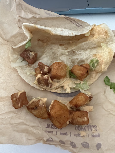 Finally, when I get home… pictured is how my new taco looked like. I guess they put the fillings in first then throw the taco in there as a side. Disgusting location. Thank God I never have to go...