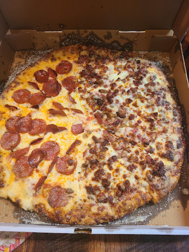 Read moreIf happiness came in a box... We LOVED this classic pizza! I don't often use the word, "hefty", to describe food, but The Supreme is exactly that; it's loaded with toppings! The cheese was lightly broiled, provided good coverage to hold the toppings in place, and stringy when pulled apart. One might expect the bottom to be doughy or soggy, but I was pleasantly surprised to find the crust even in the center held up and had a fine layer of crispiness thanks to the garlic butter. Every bite was delicious, including the crust! (I don't eat most crusts.) Try the BBQ sauce, it was a game changer and blended well with the meats.