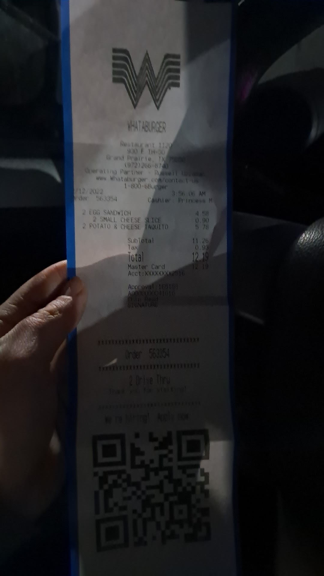 I will sending a fĂłrmale to the Whataburger corporate office as well as reaching out to owner Russell Uzzaman.