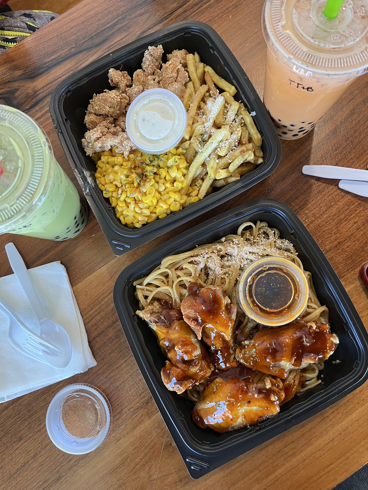 12/27/2023 People are rough with 3.6 star average. Came here on a typical Wednesday at 12pm. Nobody in the restaurant. Cashier was nice, and was able to order 2 of their $10 lunch combos. They had no pho, so I got the garlic noodles with 4 sweet chili wings. I also got popcorn chicken with corn and fries. Compared to the other Zero in north Arlington, there is a bit less popcorn chicken. Flavor is still comparable though. Fries were slightly crispy which is good. Garlic noodles…wow I like them with the sweet sauce on the side. Chicken with that sweet chili was just right, crispy outside and juicy inside. Ordered thai tea and matcha milk tea, on the sweet side but both very good. 5 stars from me. $23 for both (since boba was an add on) and added...