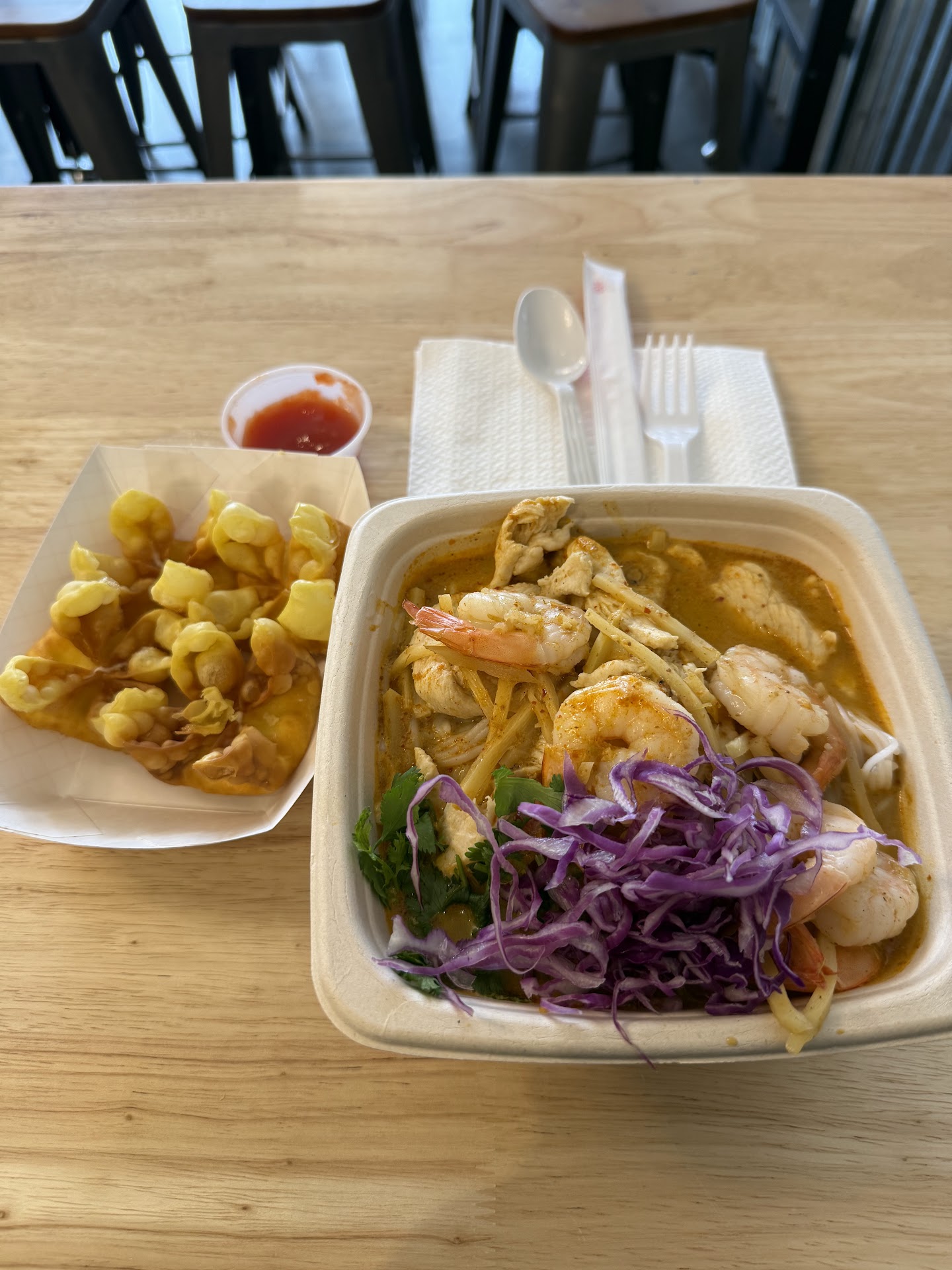 I have lived in or around GR my whole life & have always loved Angel's Thai. Recently I have transitioned to a whole foods, plant based diet & ate here for the first time since my switch. I've learned when it comes to eating out this way, it is essential to check online menus. Well, I learned today the importance of asking BEYOND what's on the menu. Warning to WFPB & vegan peeps - the Drunken Noodle, though the menu does not mention it, has eggs in it. At least, mine did. This is definitely my own fault for not asking about it, but still, I find it odd that they listed out eggs as an ingredient for every other dish with eggs in it except this one??