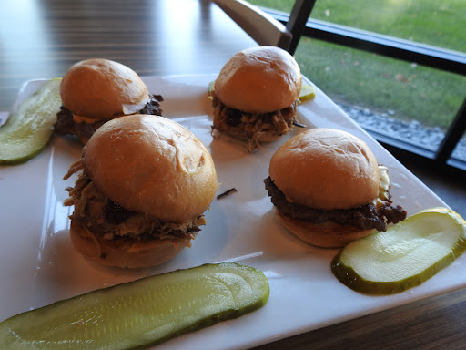 I came for happy hour which is between 2:30 pm and 5:30 pm. However they don't have their specials listed anywhere. Turns out it's 50% off select apps. Which ones is anyone's guess.I ended up ordering Boneless wings in Sweet Chili glaze. $10 qualifies for happy hour, $5. Plus Sliders (2 cheeseburgers and 2 pulled pork) $10.59, does not qualify. Nachos also do NOT qualify. The Boneless wings are VERY SMALL and the sauce has LITTLE TASTE! The Pulled pork sliders are ok, but meat is a little dry. The Cheeseburger sliders are very ehhh. Not much taste. I got some bbq sauce to put on them, YUCK! The food is not bad, but not worth the money.