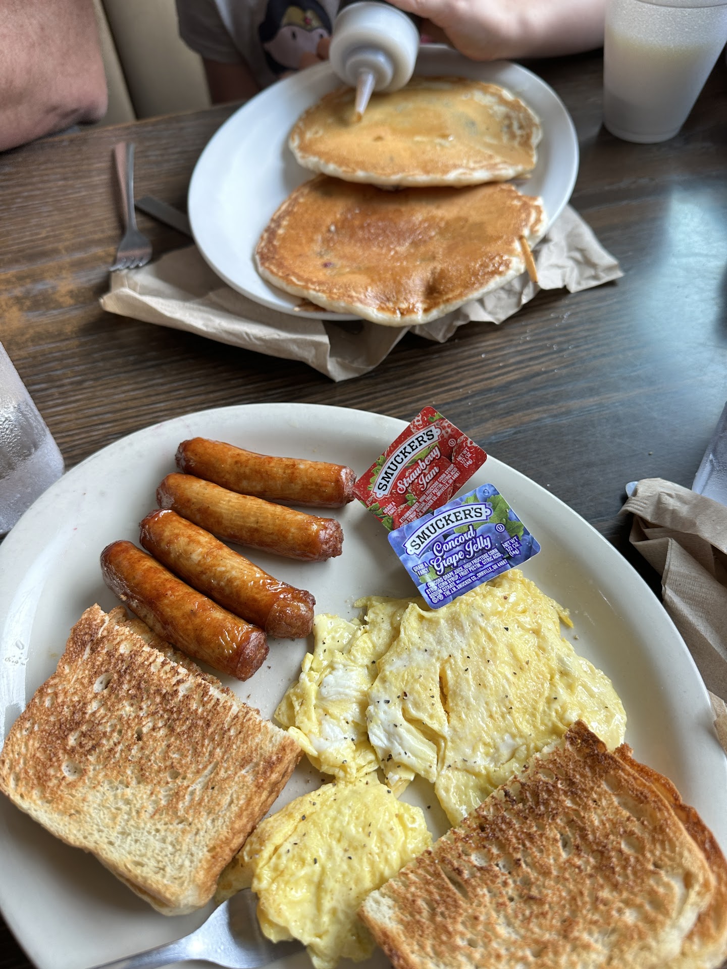 Got the eggs, potatoes and toast for 7.25. With a side of sausage gravy for an extra 2.00 as I like gravy on my home fries. The food was standard breakfast diner fare. The sausage gravy wasn't the best I've had but wasn't the worst either. Honestly the food was just okay. But I wish I had been told upon asking if they had Texas toast that it would be a 50 cent upcharge. As that is not indicated ANYWHERE on the menu even under the "on the side" toast price.