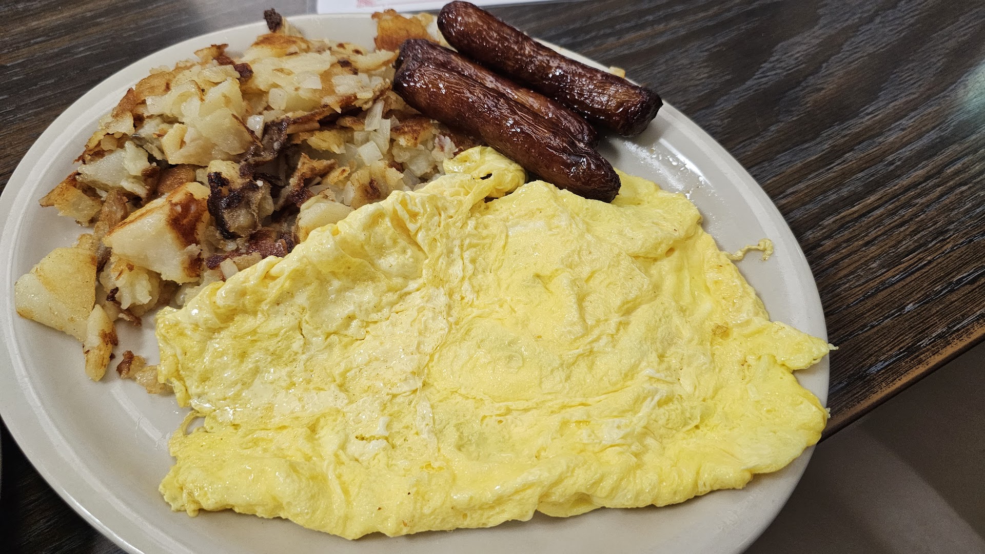Got the eggs, potatoes and toast for 7.25. With a side of sausage gravy for an extra 2.00 as I like gravy on my home fries. The food was standard breakfast diner fare. The sausage gravy wasn't the best I've had but wasn't the worst either. Honestly the food was just okay. But I wish I had been told upon asking if they had Texas toast that it would be a 50 cent upcharge. As that is not indicated ANYWHERE on the menu even under the "on the side" toast price.