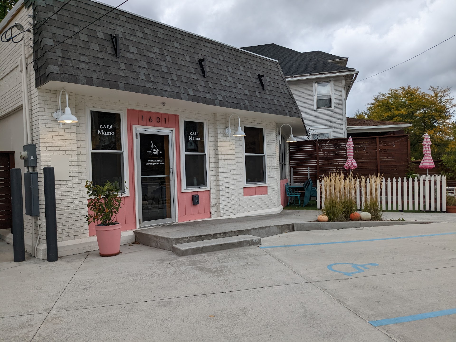 Cafe Mamo, 1601 Plainfield Quaint and clean place, limited parking. We were seated quickly. Hostess was also our server and not at all friendly, no thank you or smiles at all but was sufficiently attentive for our table. Limited menu with 4 entree choices.Three of us decided to order 3 of them and share. None came with bread or any sides at all and all were extremely small portions and overall prices suggest world class cuisine which was not the case! Bison meatballs in horseradish sauce: 3 meatballs in a thick yellow bland sauce, a bit dry and covered with some kind if greens, no sides. 1/2 chicken (can't remember what the menu said about sauce but it was pretty good) wasn't 1/2 chicken but 2 small thigh-legs, that's it. Spinach pasta: green fettuccine noodles in a cream sauce with what looked like spinach flakes, not that great and portion was very small. Approx. 3/4 cup on a small plate.(size of a tennis ball cut in half)