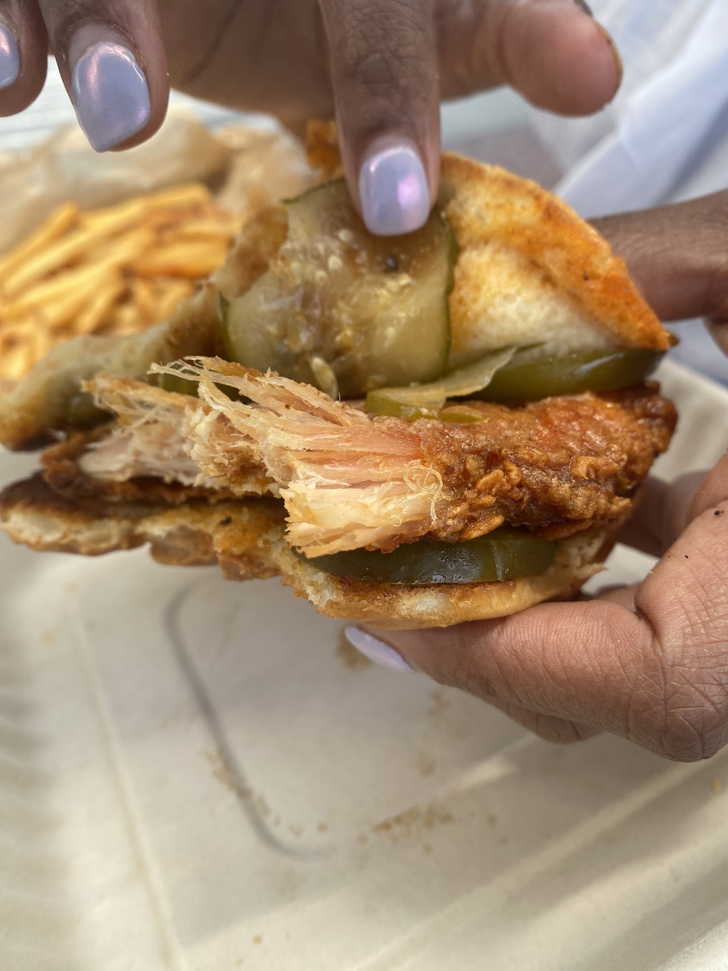 Read moreLet’s begin with, my husband thoroughly enjoyed his burger. The burger was cooked to perfection and topped well and overall a delight. I ordered the hot chicken sandwich with slaw and Mayo on the side. Took my first bite and I could barely bite through the chicken. Granted, the chicken breast was thin but super dry and tough (over cooked for sure). I took the sandwich back to them and asked “is this how all the chicken breast are cooked?” The guy said “yes” I said “but it’s so dry” he said “did you put everything on there?” Asking about the Mayo and the slaw. So I thought to myself in order to enjoy this chicken sandwich it has to be drenched in other condiments? It’s really unfortunate because I was looking forward to enjoying the food. I gave it another bite just in case but it was all the same. Needless to say it was a waste. The chicken breast should be thrown in the trash and Carver’s should stick...