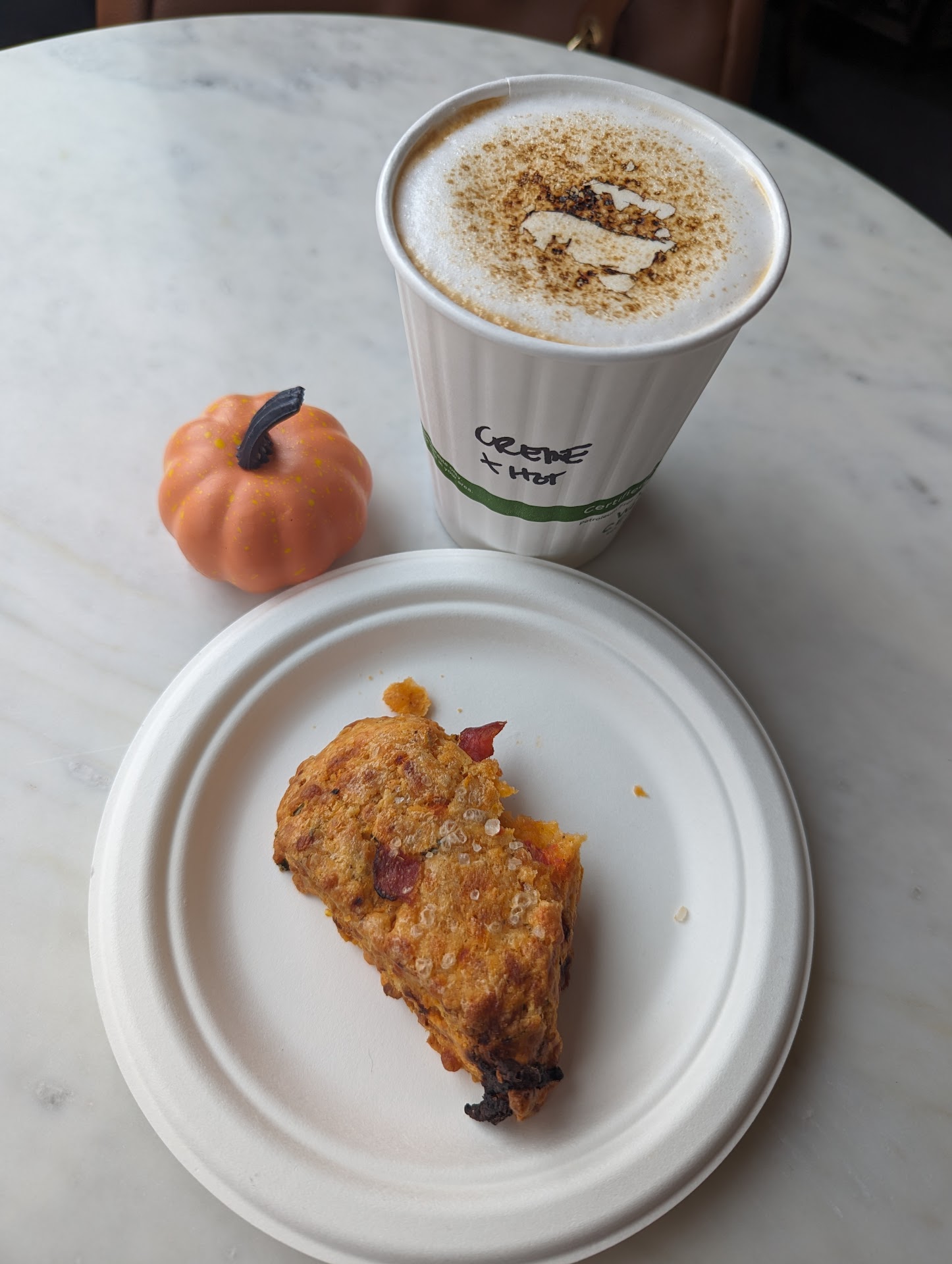 I walked in and was met with the most warm and inviting woman at the front. She immediately greeted me and struck up a conversation answering all my questions about her and her sister's business and all the pastries and drinks and even the history of the building. She recommended the creme brulee latte. It was so delicious and the top literally tasted like marshmallow fluff. I knew the latte would be on the sweeter side because of the name (and it was) so I got a savory scone with sundried tomatoes and rosemary to go with the latte. It was the perfect balance. I usually avoid scones because they're so dry especially the savory ones but the inside of this scone I got was so moist and the perfect texture of crumble on the outside. It was around $10 for a drink and a pastry but that's just the majority of cafes today anyway and the economy so not gonna take a star for that because everything else...