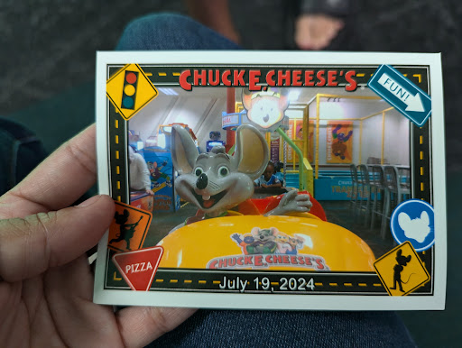 Read moreIt had been a while since I'd been in a Chuck-E-Cheese, was there for grandsons B-day. I was happy to see they still do a child safety thing at the door and when leaving, you now take a selfie with the child that you show when you leave, no more wristbands or handstamps.