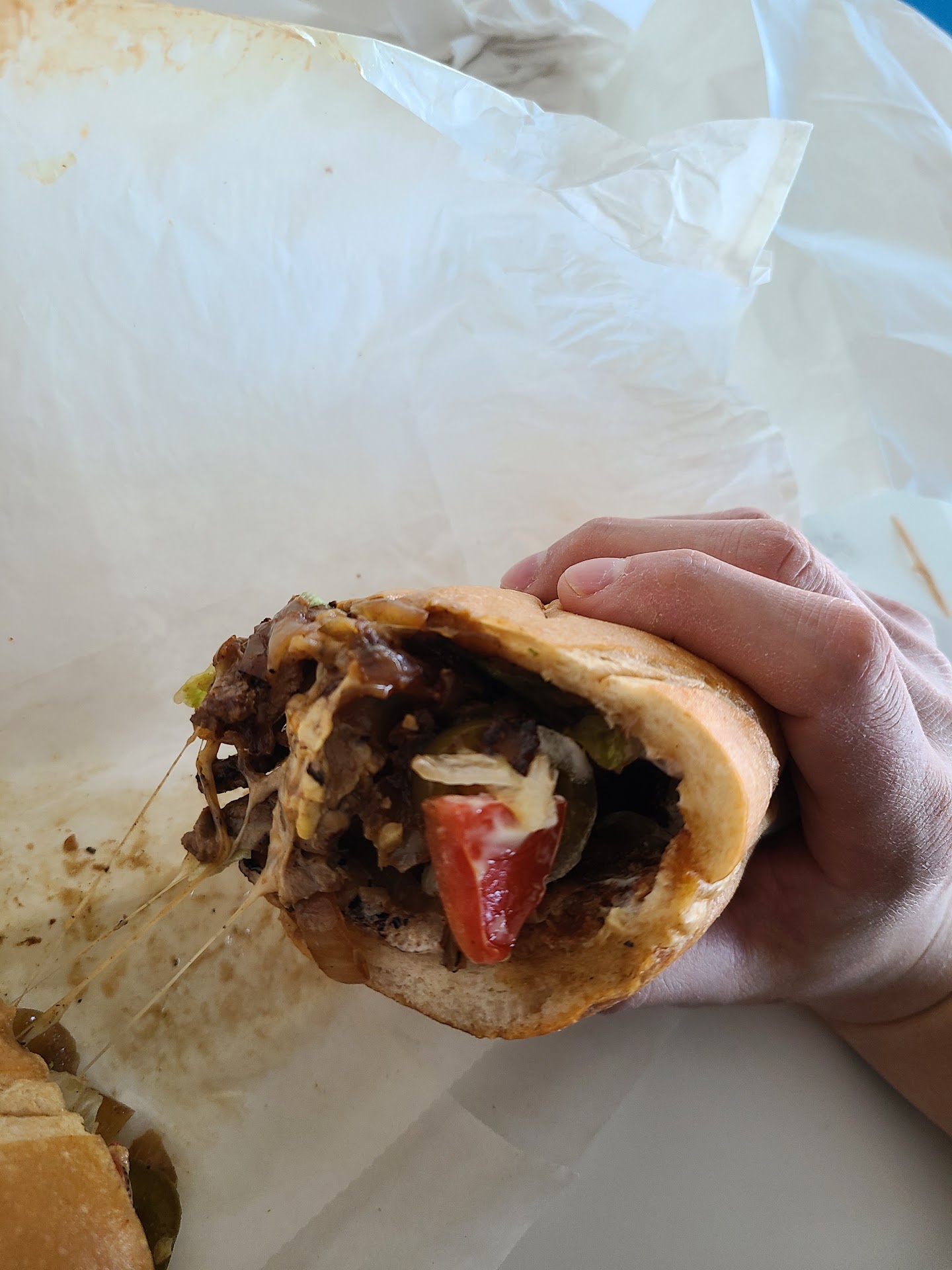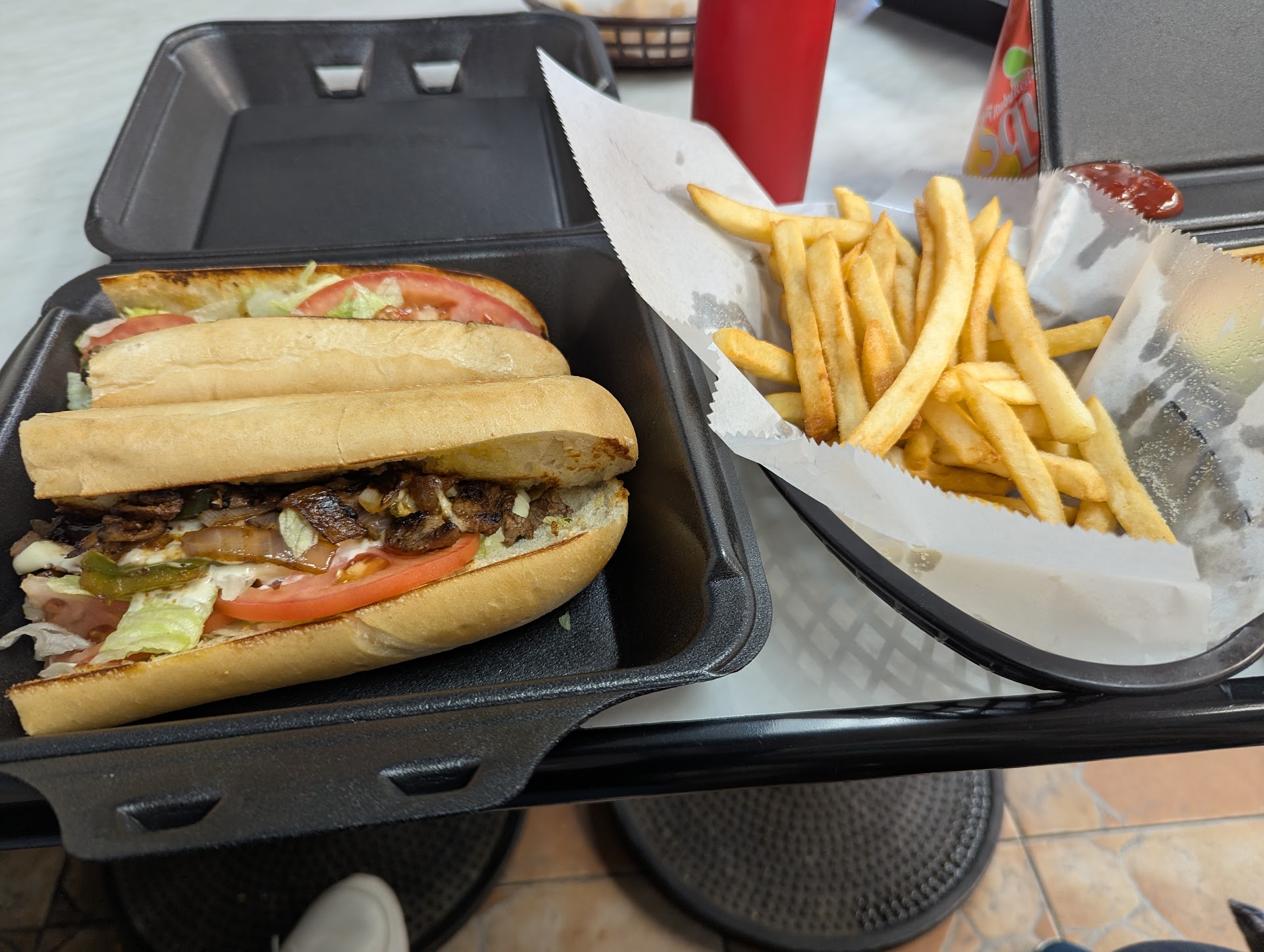 Read moreMy partner found this place on Reddit and she knows how much I love philly cheese steak sandwiches, so she surprised me with a visit here for dinner. The owner was an extremely nice and helpful man, I wish I would have asked his name. He treated everyone like a regular customer whether you were or new like us. He had fun interacting with the kid in our group, once he brought the food out, he jokingly offered his meal half price if the kid could eat everything in front of him. The kid countered with free if he did and the owner agreed. The kid had ordered the cheeseburger special which was huge with a load of fries. My partner and I both got their signature philly cheese steaks and shared an order of fries. The philly was hot and loaded with beef, sauteed onions and green peppers and loaded with cheese then topped with lettuce, tomatoes and mayo. We brought home over half our meals. The kid finished his burger and made a dent in his fries but couldn't finish. They have an amazing selection of canned pop to choose from for your drink. They even had Peach Crush which is hard to find where I live. I spoke with the owner after eating and thanked him for a great sandwich and asked about his wings and he said so so and to stay with the philly. He told us that he had been in this location for 24 years and had loved every minute of it. I could tell by the way he treated his customers. He was doing a brisk business of carry outs but not too many people ate in like us. When in Grand Rapids again, we will definitely be back for...