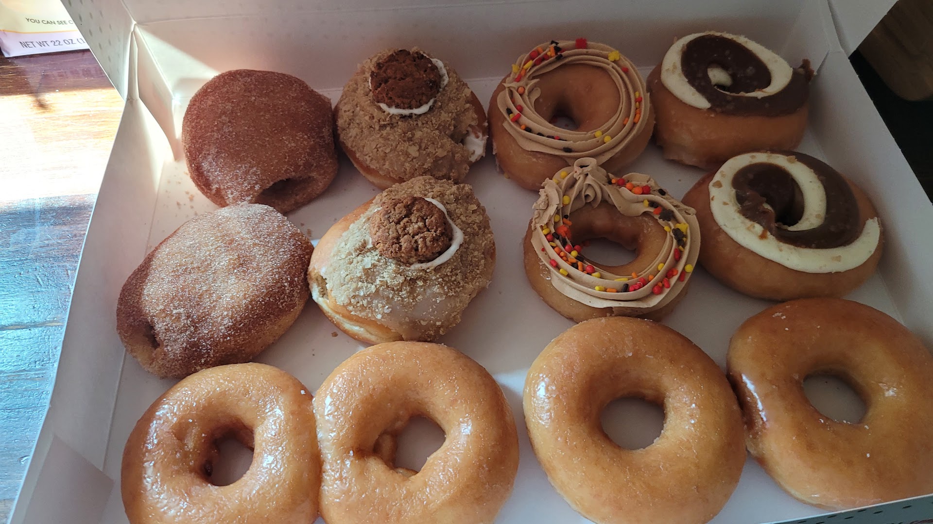 The worse was when the cashier finally took the order of the guy ahead of me, and both the customer and the employee were on their phones. It took forever for this exchange as both fumbled around, half paying attention to what they were doing. At one point the employee came back with a dozen of assorted donuts. The customer and him talked some more, then the employee took some donuts out of his box, placed them back on the racks, then grabbed different ones. My son originally wanted one of those flavored donuts from those racks, but after seeing that, I said no. I only trusted buying a fresh glazed one from the line. I am amazed at the incompetence of the staff and poor...