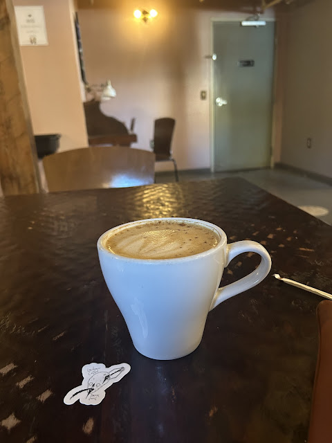 Read morePlan to pay for downtown street parking. $1-4 for 1-4 hours limit. Cool little place with a basement with 8 stuffed arm chairs with non moveable coffee table in floor. (not really laptop friendly). 4 small tables, 4 desk tables for 1 with lamps perfect for laptops.(absolutely awesome!) 3 high top tables with bar stool seating and 1 large table for groups. A few outdoor chairs, no tables outside though. (Basement is not wheel chair friendly due to stair access). A few bar window seat upstairs too. Matcha was delicious. Ranged $5-$7, ( not including tip). Chocolate muffin was amazing! However they were basically sold out of pastries or anything other than refrigerator cookies by 11am which is why I give it 4 stars. If you plan on a few drinks and staying for a bit, plan on at least $20-$30 due to parking, tip, and drinks. Staff was very friendly. Bring headphones as music is too loud. Otherwise nice cozy experience. Recommendations. Would like to see a few laptop mobile tables for stuffed armed chairs, more food or baked goods, quieter music, maybe less rap, or more elevator music type so you can talk easier or work easier? Otherwise...