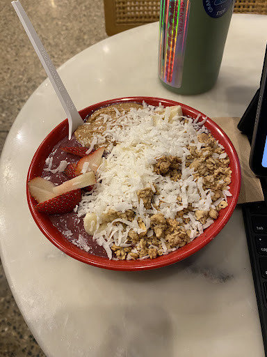 Came in around 7pm and studied on a comfy couch until midnight. I got the açaí bowl, and ended up ordering another one a few hours later! It was delicious, the picture does not do it justice. Service was great, friendly and fast!
