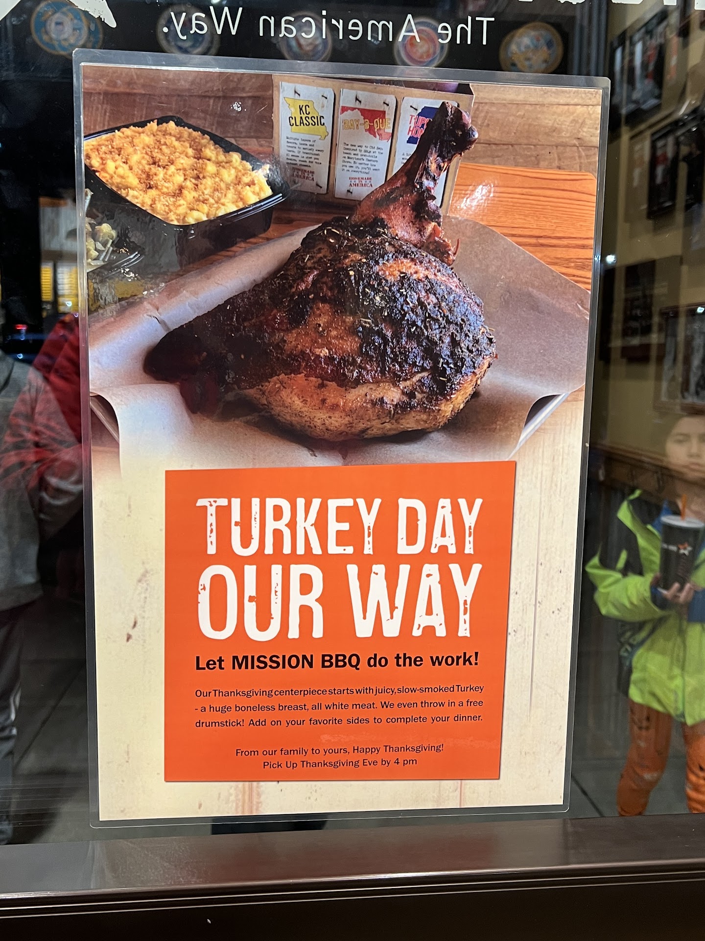 Well there’s a lot to be desired with our service and food. We went here on Nov. 13 @ 530. I’ll start with the 2 people who were at the register. The one taking our order had changed some items “to a combo” which means smaller sides. We had order regular sides as there were 6 of us so when we received the single serving of green beans and Cole slaw we were obviously confused. We did end up getting a full side serving of green beans however it had too much sodium and we didn’t eat it. I had noticed the Thanksgiving special they were doing. I asked about it, he looked at the sign by the register and said “it’s a special we are doing in 8 days”. I had pointed out to him that it says 8 orders left and nothing to do with days. He seemed clueless so asked the other guy at the register who didn’t know what this thanksgiving day special was about. Moving onto the food, in general it was ok. We ordered 1lb of pulled pork, 1/2 lb of chicken, 1/2 brisket, and 3 ribs, green beans, coleslaw, and fries. The green beans and the Memphis belle sauce at the table had way too much sodium. So much sodium the green beans were inedible, I can’t repeat this enough, too much sodium. The meat didn’t really taste fantastic. You could get the same meat at any general bbq place. My husband asked if there was a military discount and the cashier said no but he would give us a cobbler. We didn’t get the cobbler because when we picked up the food we were told there’s no free cobbler for military discounts. We drove 20 minutes to eat at this restaurant because of the reviews and we are left wondering how people are giving 5 stars. Sharing the thanksgiving sign at the door as I didn’t get a pic of the one at...
