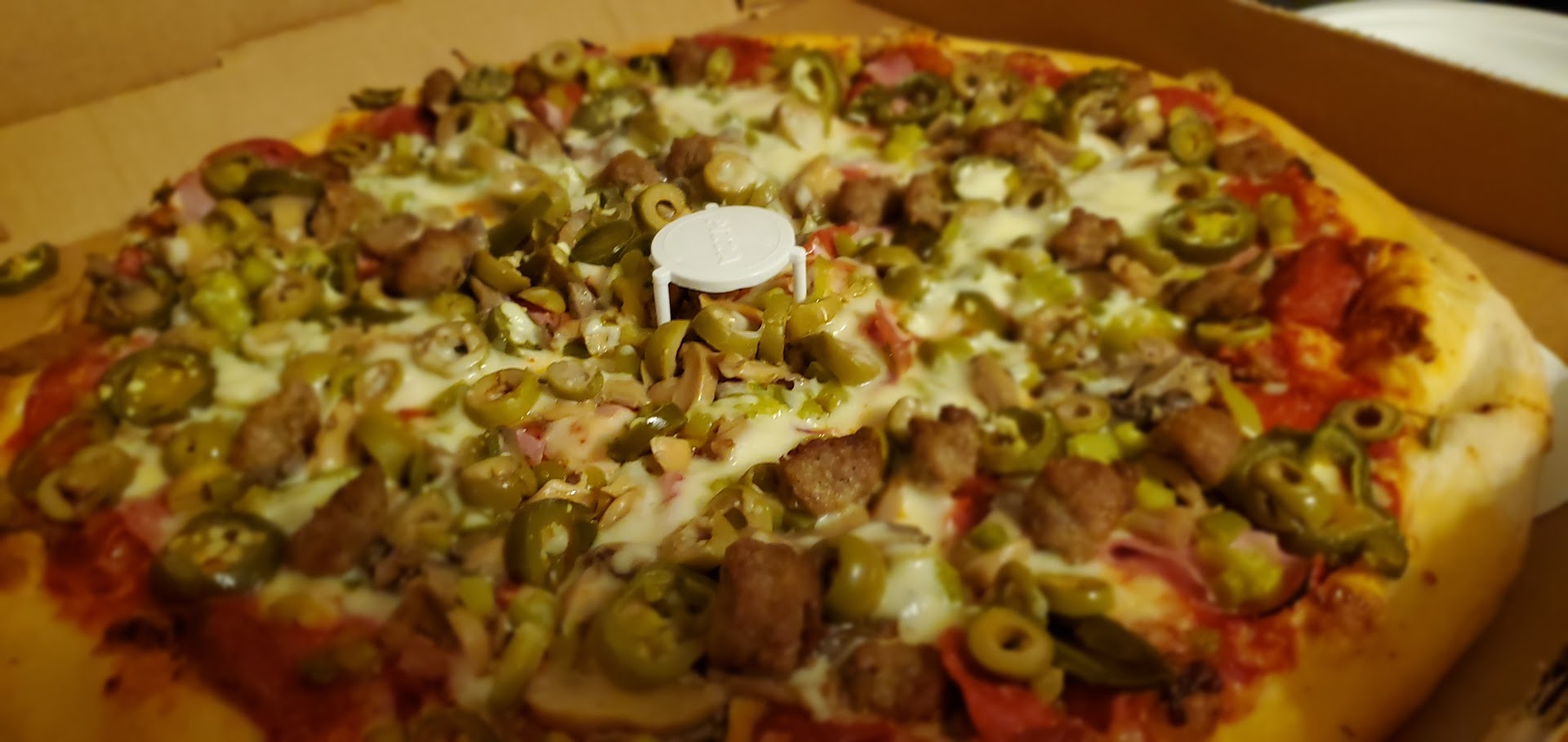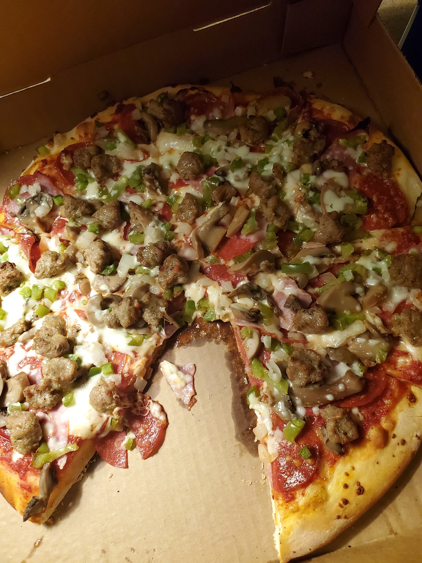Edit Review: 5/28/2021 After 6 months of not ordering I decided to give Mr. Pizza another chance. This time I did the pick up so it was nice and hot. Ordered Two large pizza. One deluxe and one Meat lovers. Also I wasn't the only one rating the quality of the pizza it was my kids. They said it was very big piece and they liked it very much. My daughter's only comment was the meat lover didn't have enough cheese. It good quality pizza.