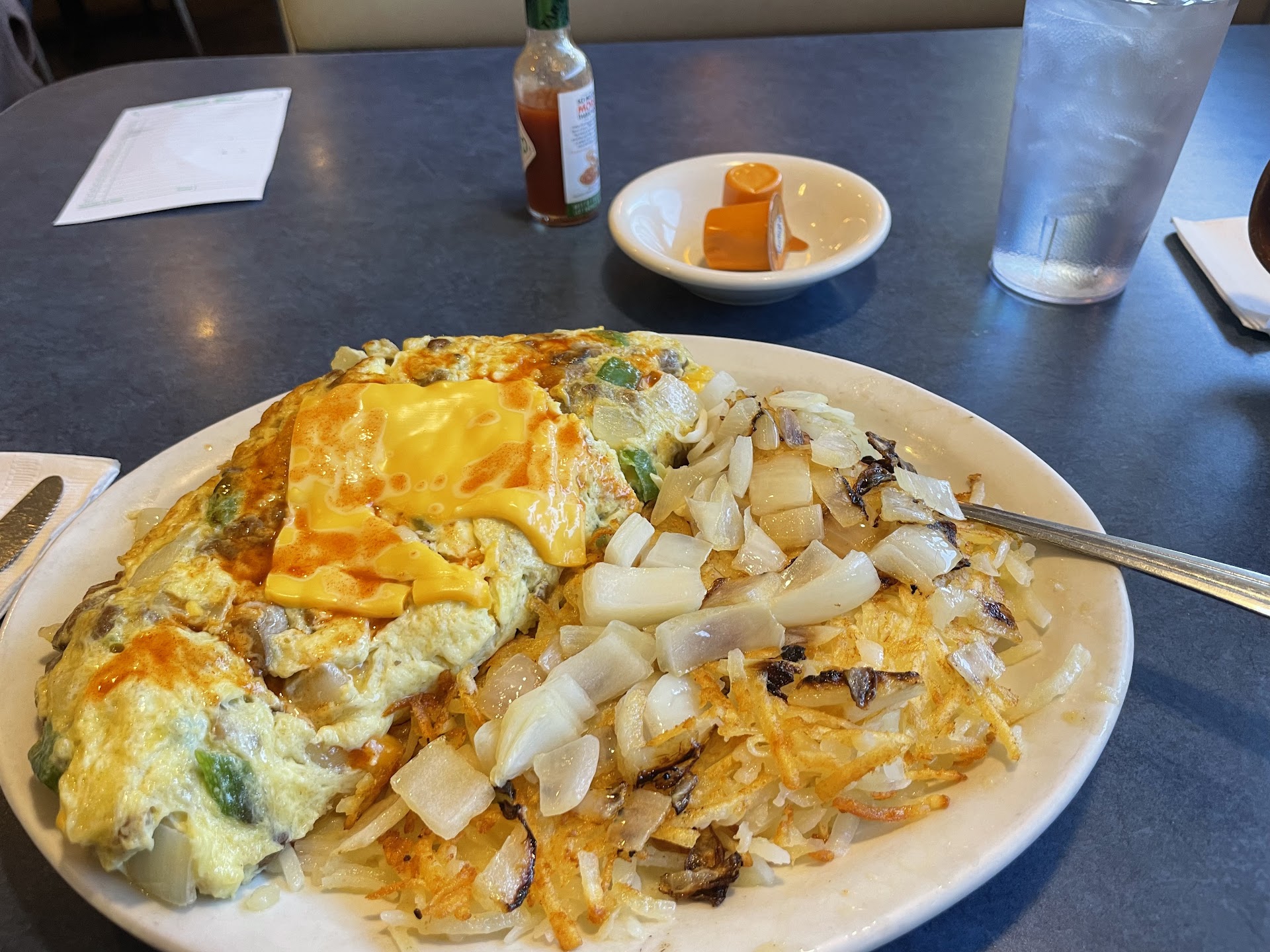 The food... Wow! I ordered a Western Omelette smothered in sausage gravy and a side of corned beef hash with fried onions on top. One word, incredible!
