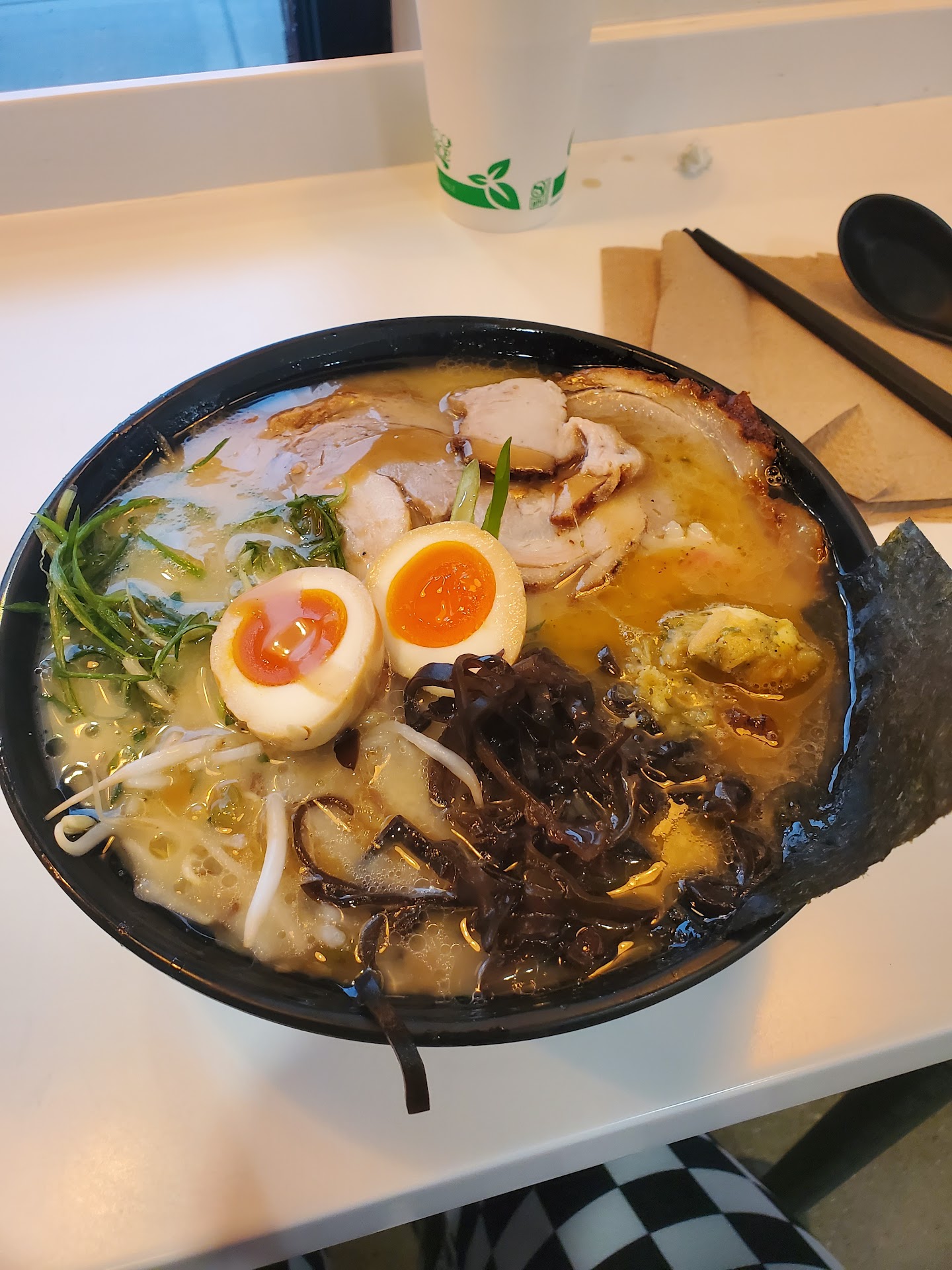 Read moreSo first thing is ramen. It was good not amazing but good. Price could be different due to the fact the service doesn't match the price either. The menu itself is small and doesn't have much variety but that's ok could be altered later. The service itself seems quick when making the food and getting our beverages. Now where I see it can be a problem is this whole new era of self serve where you get your own table and get your own drink could not play well with this restaurant due to the fact it's a small place so if you want to sit down and enjoy your food you will have to wait until someone gets up,and it's not like they keep track of who is sitting where because it's self serve. Basically they are there to provide food and after that find a table or takeout to save yourself the trouble. It would work with more room but lack of space will push out customers just wanting to sit down and enjoy food. Another thing is when your name is called you have to get your own ramen bowl. So it's already risky getting a table now imagine getting up to get your food in a new busy spot, accidents are bound to happen. If you get a drink you would have to cut thru the line of customers ordering their food just for you to ask someone for a refill. It just seems unnecessary. I get if it's McDonald's or Wendy's or something but this isn't fast food. You do feel rushed to eat your food because people will be staring at you to see if you are leaving your table because they need a spot to sit down. They need a way to keep track of that. Even when we got our table no one really cleans the tables we had to get napkins and clean it ourselves like the staff that does the work are the coolers. There should be a better system or play around with the seating or something. The food itself was not bad it did lack protein and needed more eggs or pork I had to pay extra for one more egg. Most places provide that. The noodles themselves were actually not bad. Could be a little different but still good. I do see the place being better once they get around the bumps but right now you're best bet...
